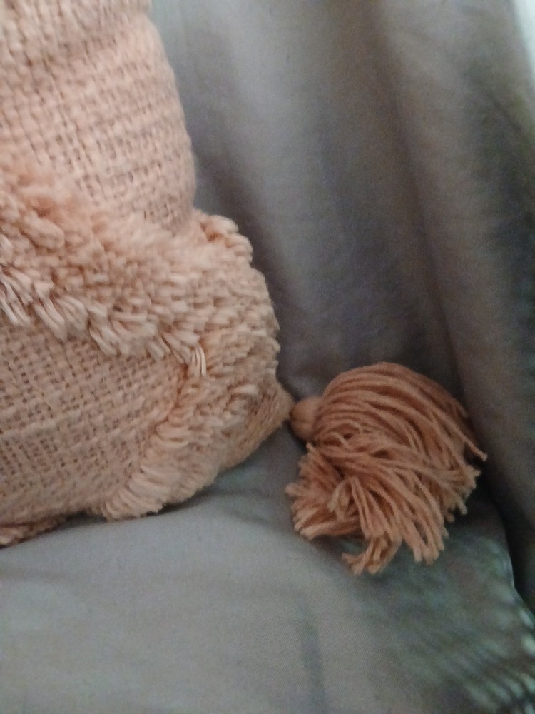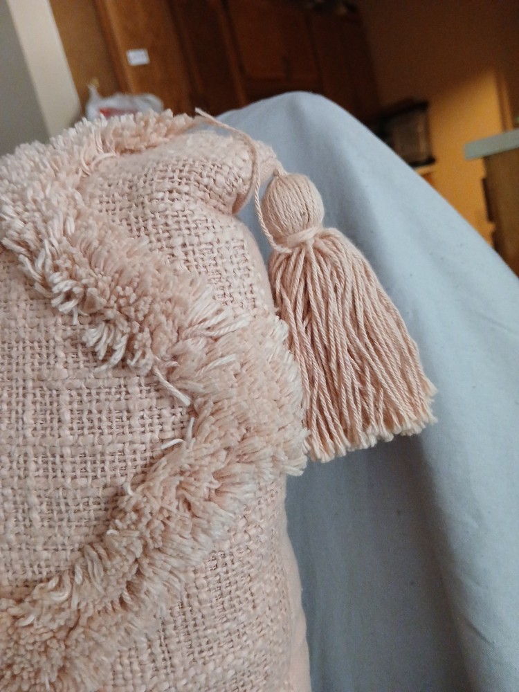 This cute pink decorative pillow is in good condition. No tears or damage....