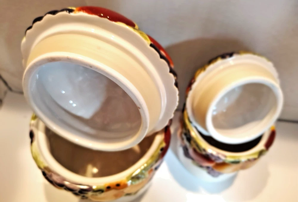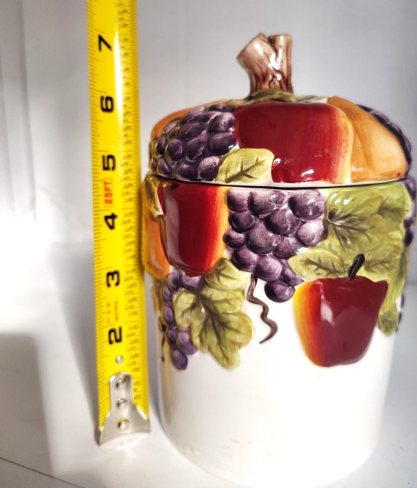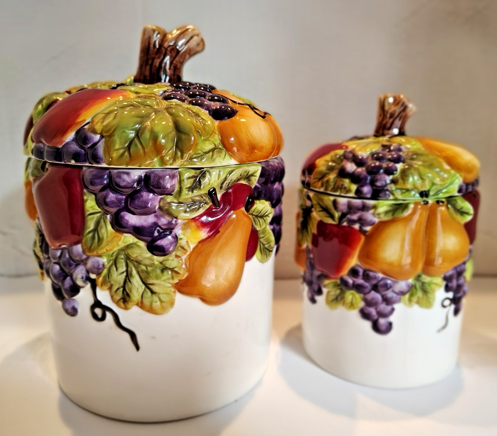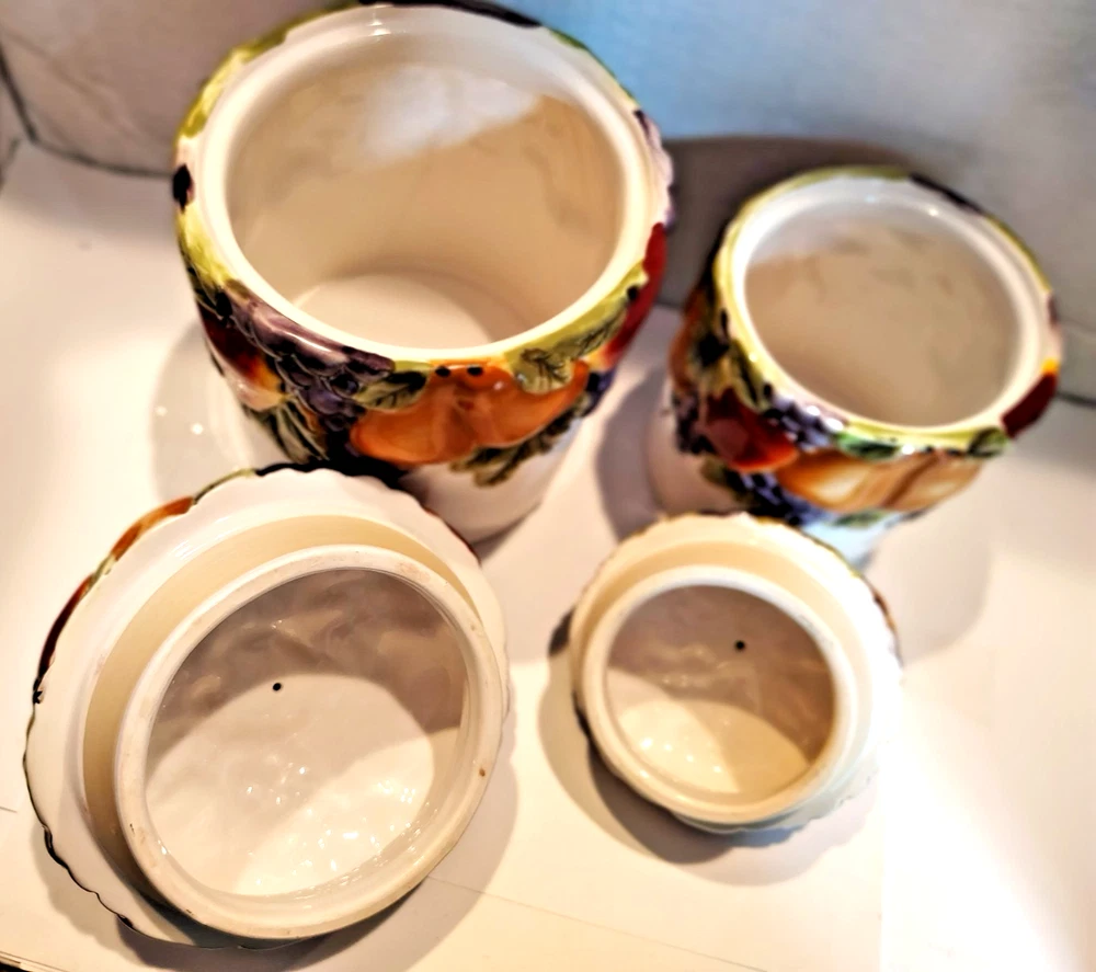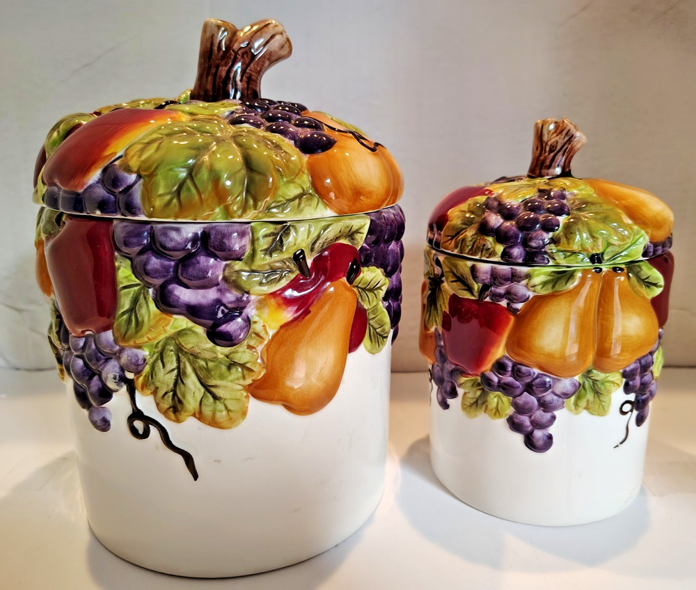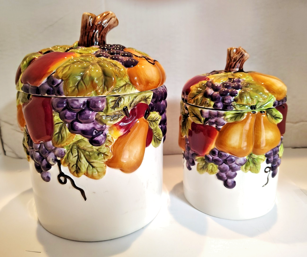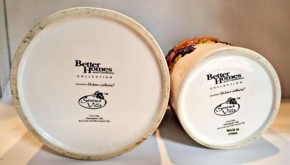 This is a set of two Better Homes and Garden canisters by Sonoma Villla. The larger canister is approximately 8.5" tall and the smaller canister is approximately 7" tall. Please look at the photos to see how the measurements were taken. There are no chips or cracks and the seals on the canisters are intact and in good shape. If you have any questions please let me know. Thank you for looking.