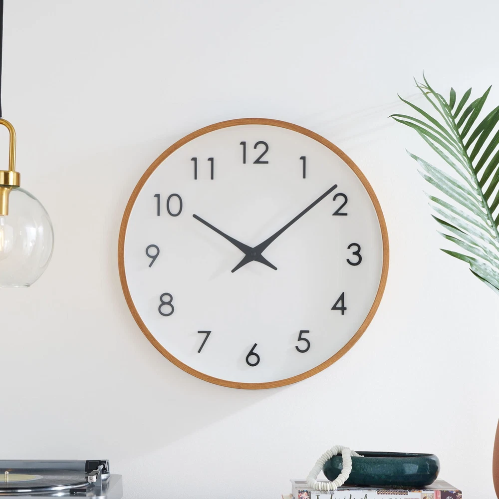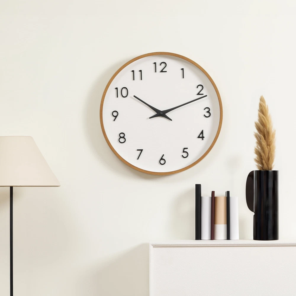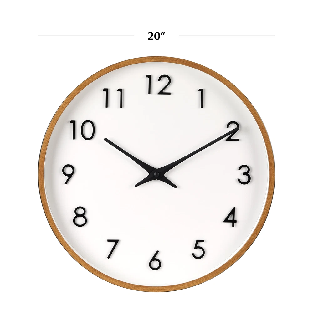 Impress your guests with the new Better Homes & Gardens 20” Modern Wall Clock. This modern and sophisticated timepiece is sure to be a focal point in any room whether you hang it on the wall or lean on a tabletop. Featuring raised Arabic numerals in a satin black finish, its modern design will enhance any space with a chic pop. The warm wood grain finish gives it a contemporary feel, while the dimensional dial with raised numerals lends an aesthetic depth to its profile. This blend of clean lines and the modern wood grain finish makes the clock not just a functional item but an art piece. It’s not just a time-telling device; it’s a conversation starter that effortlessly transforms any wall into the perfect focal point. On Jun 5, 2025 at 21:27:59 PDT, seller added the following information: