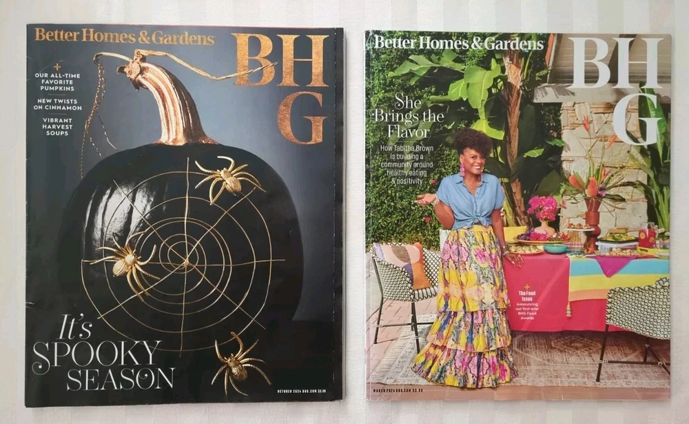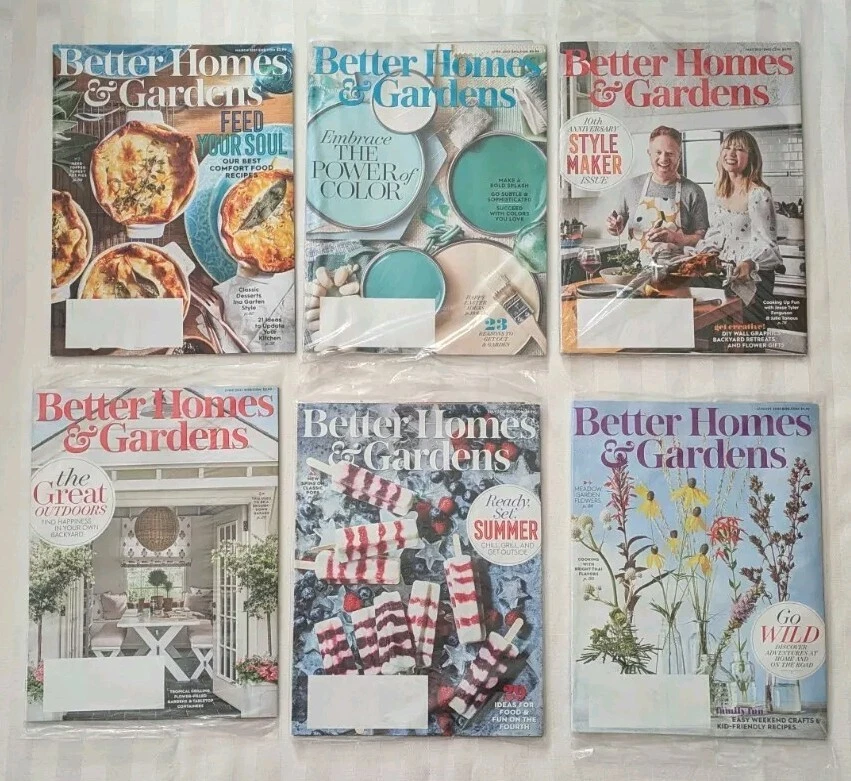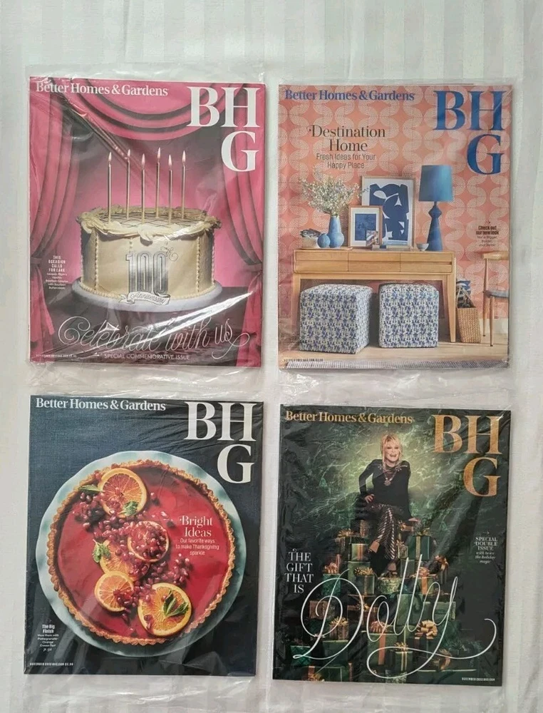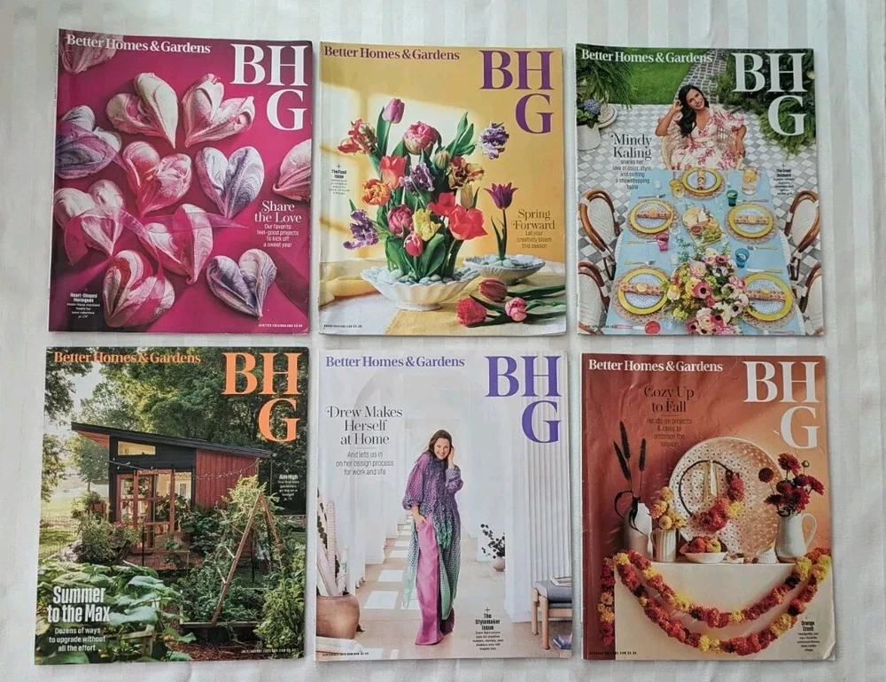 Get inspired with this set of 30 magazines from Better Homes & Gardens, spanning the years 2020-2024. Filled with beautiful illustrations and ideas, this publication is perfect for anyone interested in home and garden decor. Take a look at the latest trends and styles in the industry with this lot of magazines. From DIY projects to professional design, Better Homes & Gardens has it all. Don't miss out on this opportunity to stay up-to-date with the latest home and garden news. Most new, in package, some lightly used. One magazine cover has a small amount of writing, and one has some wrinkling, shown in photos. Please note, these are not complete sets for any of the years listed.