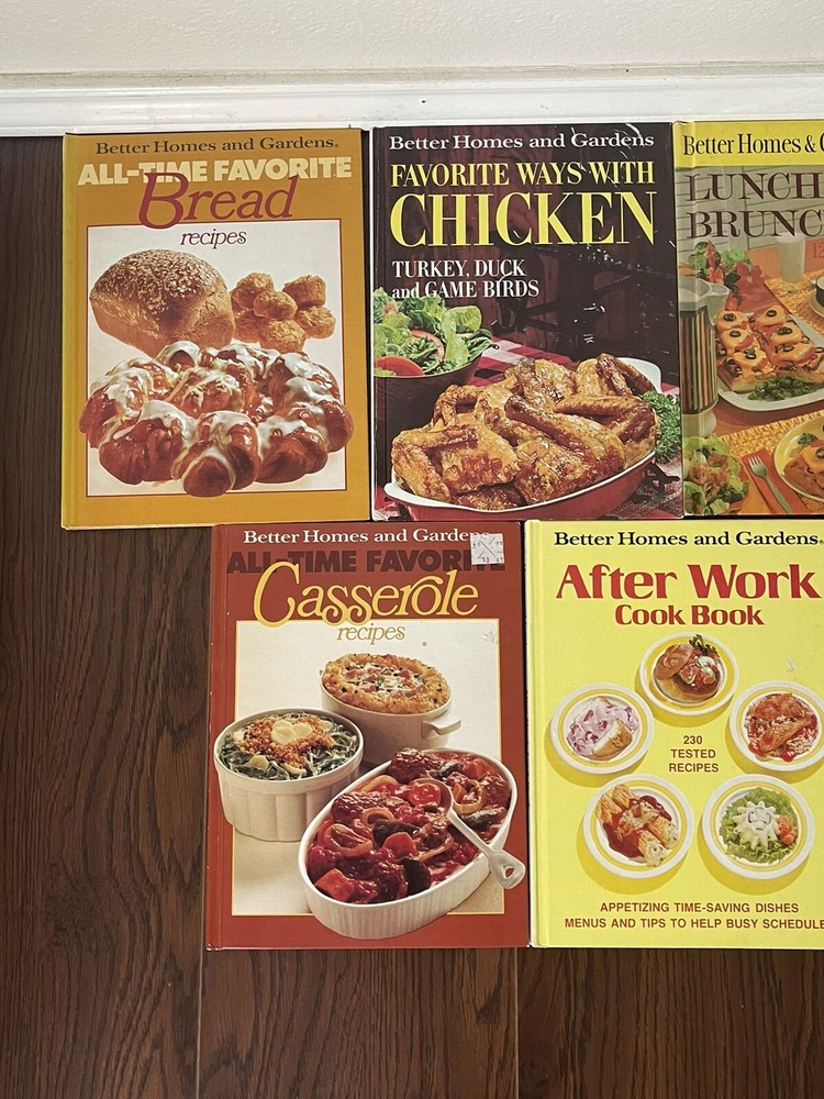 Better Homes And Gardens 70’s 7 hardcover cookbook lot, bread, chicken, meat…... after work cookbook Favorite ways with chicken Casseroles Bread Meet cookbook Best buffets Lunches and brunches...