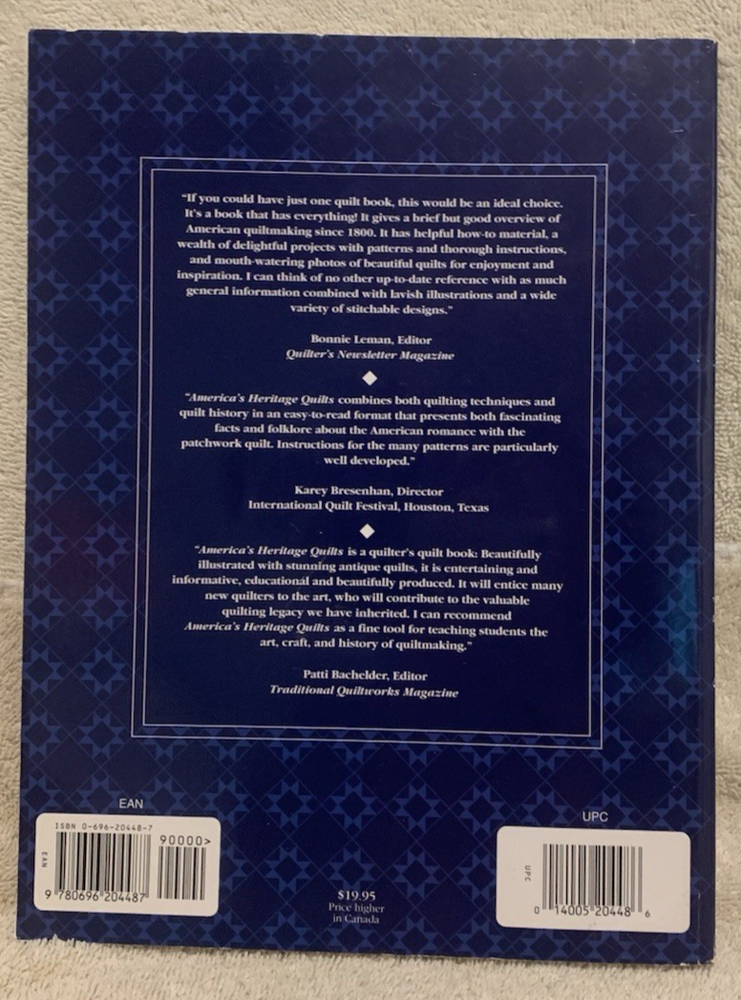This listing is for a Better Homes and Gardens America's Heritage Quilts Paperback Book. It is in good used condition. Item will be shipped within 24 hours of cleared payment. Please email me with any further questions. Combined shipping is available. I charge USPS Ground shipping costs based on the weight of your package & your zip code. Just put items in shopping cart & request a combined invoice before you pay.