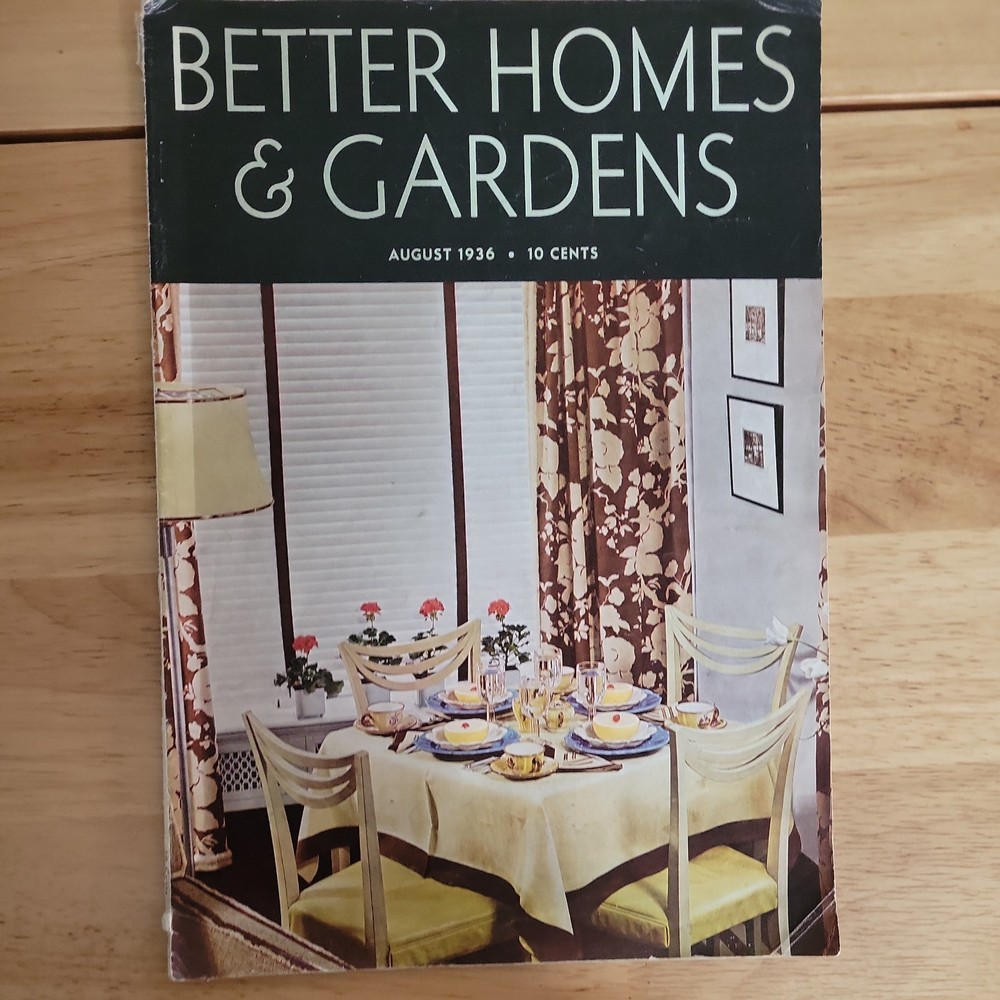 The product is the August 1936 issue of Better Homes and Gardens magazine, featuring Emily Harrison's home. This vintage magazine provides readers with ideas and inspiration for home decor, gardening, and lifestyle tips from the 1930s. With a focus on creating a cozy and inviting atmosphere, this issue likely includes articles on decorating, cooking, and other topics related to domestic life during that time period. Perfect for collectors or those interested in vintage lifestyle magazines, this issue offers a glimpse into the past and the styles and practices of the era.