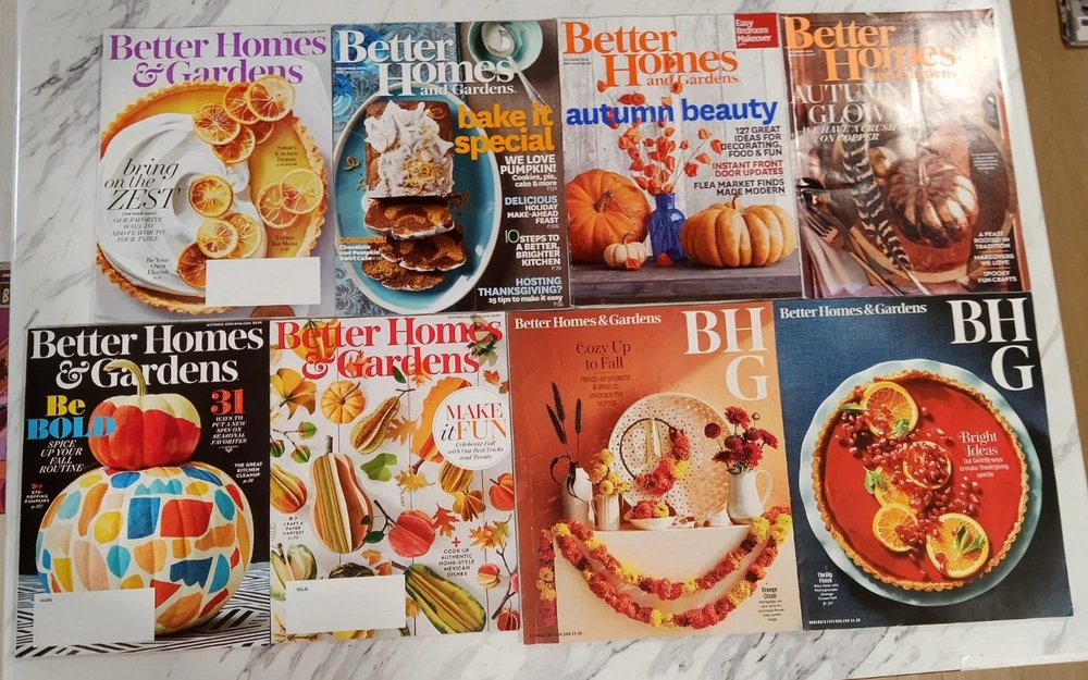 Better Homes And Gardens (BH&G) Fall 8 Magazine Lot: October 2023 - Cozy up to Fall November 2022 - Bright Ideas for Thanksgiving October 2021- Make It Fun Celebrate Fall October 2020 - Be Bold - Spice Up your Fall Routine May 2020 - Bring On The Zest October 2016 - Autumn Glow November 2014 - Bake it Special, We Love Pumpkin! October 2014 - Autumn Beauty