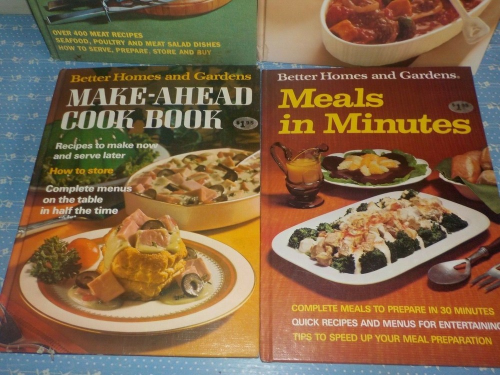 Better Homes And Gardens Cookbooks Hardcover 1971 First Edition Make-AHead Cookbook 1973 Revised Edition First Printing Meals in Minutes 1977 All-Time Casserole Dishes 1969 2nd Printing MEAT Cookbook Betty Crocker's Do-Ahead Cookbook Golden Press New York Spiral Bound Hardcover 2nd Printing 1985 1984 Revised Edition Books in Great Condition Questions Welcome Thank-you, for Looking!