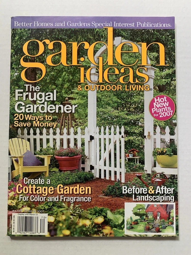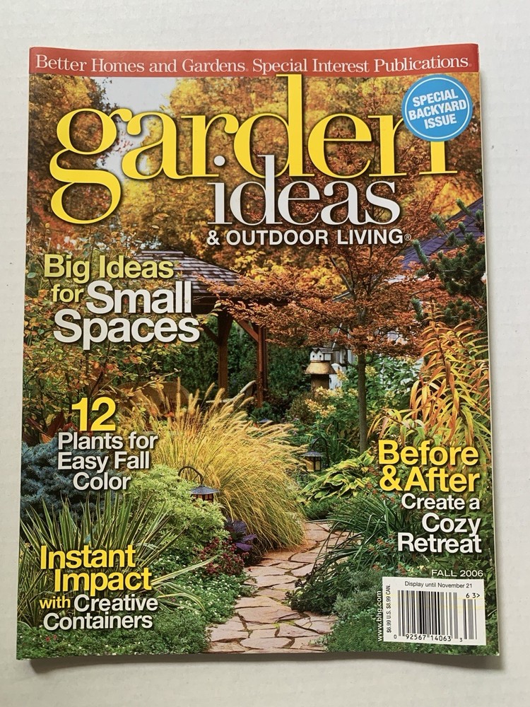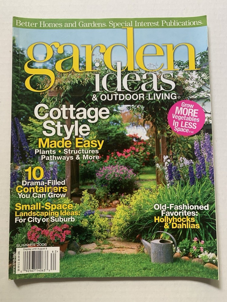 Lot of 7 Garden Ideas and Outdoor Living magazine from Better Homes & Gardens. The magazines are in good condition - no tears but some curling on the edges. The lot includes the following issues: Early Spring 2007 Spring 2005 Spring 2006 Summer 2006 Fall 2006 Summer 2005 Fall 2005