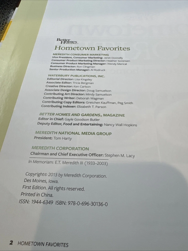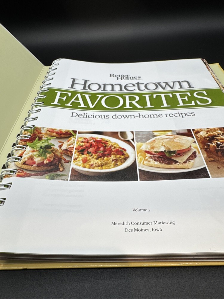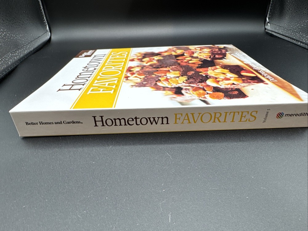 The product is a hardcover cookbook titled "Better Homes And Gardens Hometown Favorites Volume 5 Cookbook," published in 2013. It features delicious, down-home recipes by mixed authors, focusing on gardens as a topic. The book is written in English and belongs to the genre of cookbooks. It is in great condition