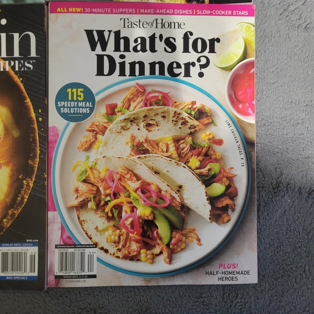 You recieve one of each: ~ Better Homes And Gardens Magazine 2024 Meal Planning ~ Taste Of Home Magazine 2024 what's for dinner ~ Better Homes And Gardens Magazine 2024 pumpkin pie recipes ~ Better Homes And Gardens Magazine 2024 best quick breads and muffins NEW Sold As Pictured Indulge yourself in the world of cooking, activity, casseroles, and food & drink with this lot of 4 Better Homes & Gardens magazines from 2024. Packed with delicious recipes and inspiration for your next meal, this special edition set includes multiple issues from the renowned Centennial publisher. Immerse yourself in the culinary arts and discover the perfect addition to your recipe book with this lot of magazines. From the mouth-watering photos to the easy-to-follow instructions, these publications are a must-have for any home cook. Don't miss out on this opportunity to enhance your cooking skills and add some deliciousness to your meals.