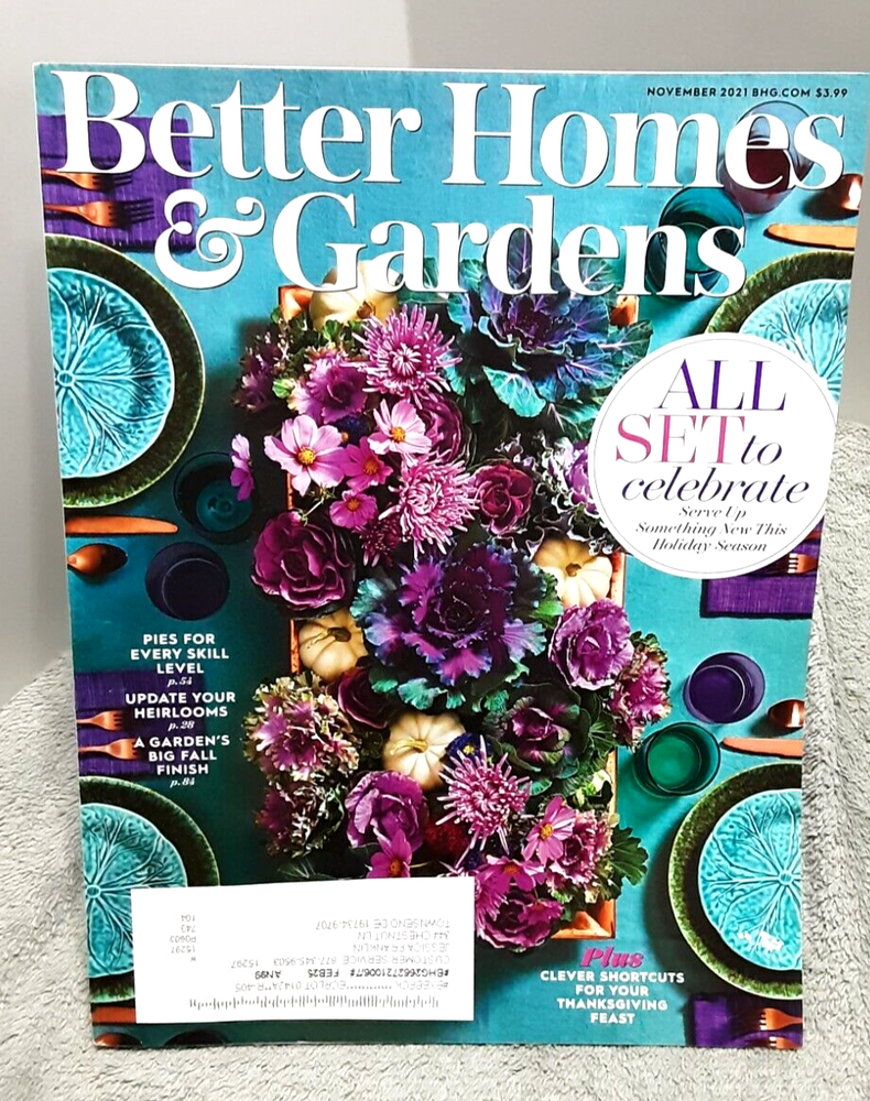 Better Homes & Gardens Magazine November, 2021. Complete magazine. Good to better condition. ....