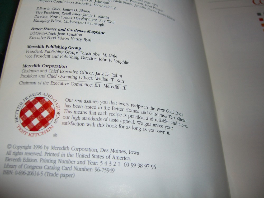 Better Homes And Gardens New Cookbook Copyright 1996. Stated 11th edition 5th printing, published by Meredith Publishing . The book is in very good condition, Soft cover, illustrated in color, contains 544 pages including the index, please see pictures for the contents . Worldwide Shipping via Global shipping program