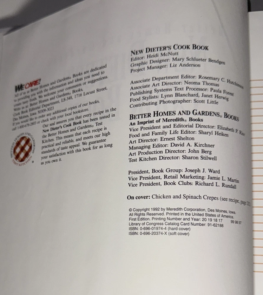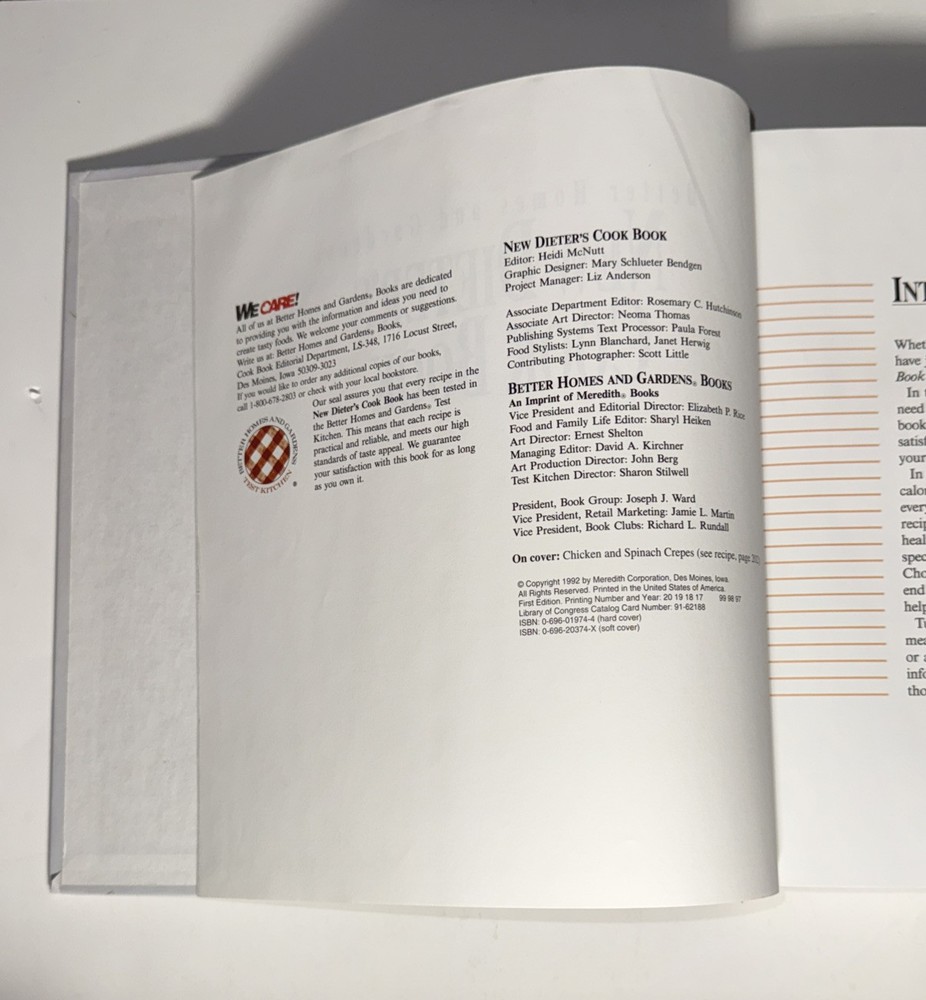 Excellent Vintage Condition – Fully Illustrated, Oversized Hardcover This first edition of Better Homes and Gardens New Dieters Cookbook (1992, Meredith Books) is a must-have for anyone seeking delicious, low-calorie recipes. With 480 beautifully illustrated pages, this vintage cookbook is designed for both young adults and adults looking to maintain a healthy diet. Features: Every recipe includes : • A full-color photo of the dish • Total calorie count per serving • Preparation, marinating, and cooking times • Low-fat and cholesterol indicators • Complete nutritional breakdown This cookbook is a fantastic addition to any kitchen, offering practical and flavorful meal ideas. Thank you for looking!