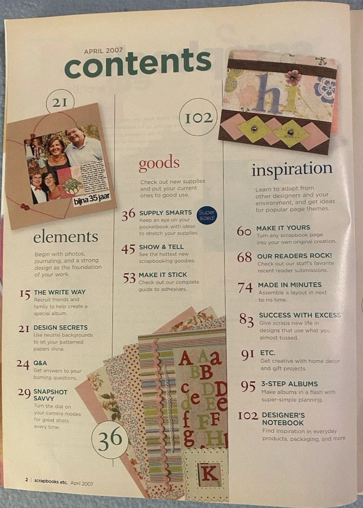 These Better Homes And Gardens Scrapbooks Etc. are a Lot Of 2 Magazines. They were preowned but condition looks good. Please review photos to understand actual condition and the contents of these magazines. The Summer 2002 Issue has 145 ideas and APRIL 2007 Issue has 244 ideas and shows how to do digital scrapbooking.