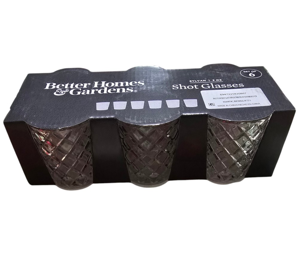 The Better Homes And Gardens Shot Glasses set includes six 3 oz shot glasses made of clear glass with an abstract etched design. The round shape and antique style add a touch of elegance, making them suitable for all occasions. These shot glasses feature a garden theme and are branded by Better Homes & Gardens, making them a stylish addition to any bar or liquor collection. Perfect for serving shots to guests, this set is designed for unisex adults and includes six shot glasses in total.