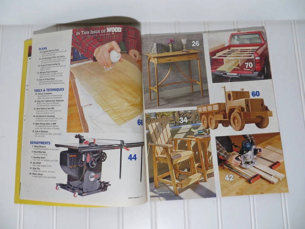 Immerse yourself in the craft of woodworking with this 2018 lot of 4 Better Homes and Gardens Wood Magazine issues. Packed with inspiring projects and expert tips, these magazines are perfect for both beginners and experienced craftsmen. Each issue offers clear, step-by-step instructions and creative ideas to bring your woodworking visions to life. The quality content and diverse techniques make this set a must-have for any enthusiast. English language readers will love the well-organized articles and practical advice. Great condition, ready to spark your next DIY adventure!