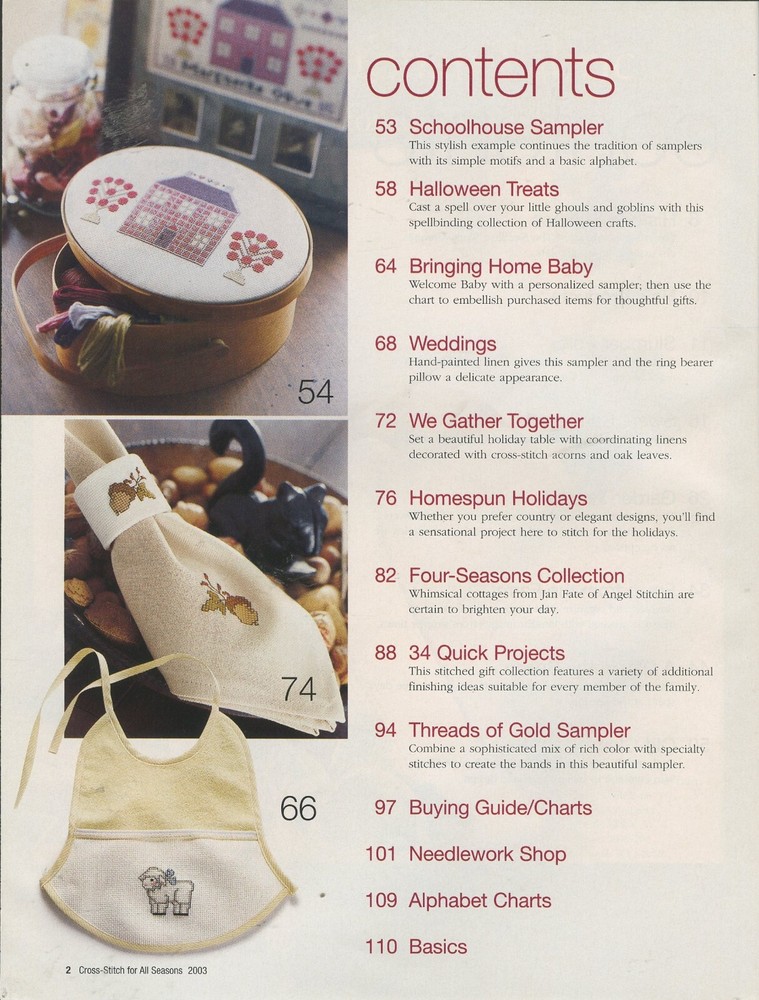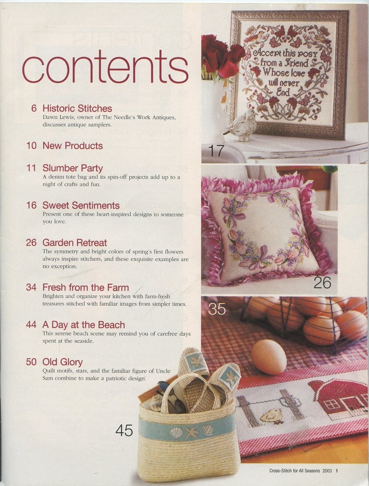 Better Homes and Gardens Cross Stitch For All Seasons 100 Great Projects Magazine 2003 Magazine is Gently Used See Picture(s) for Contents in Magazine Listed from my smoke / pet free home. Combined shipping is always offered! If purchasing more than one item, please let me know so that I can give you an exact shipping quote. I do ship internationally although there are additional shipping charges involved. Any additional charges for duty tax etc. is not covered and must be paid by buyer.