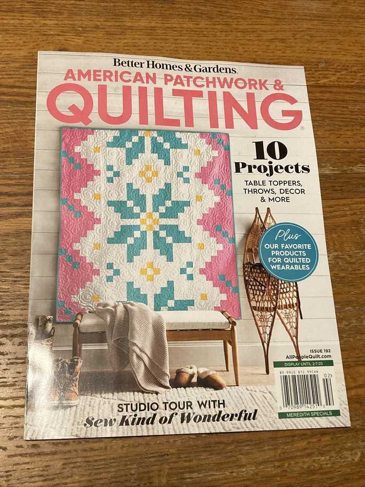 The product is a physical magazine titled "Better Homes & Gardens American Patchwork & Quilting #192." It is a quarterly publication in English, focusing on the genre of quilting. The issue is set to be released in February 2025 in the United States. The magazine does not offer a subscription option and will be shipped for free. This issue likely includes various quilting projects, tips, and inspiration for quilting enthusiasts. Note magazine is new , how ever does show signs of shelf wear ( means may have bent pages , “Shelf wear is a form of damage that can develop on items removed and replaced on a shelf. It can also refer to damage caused by rough handling by staff members and customers. Shelf wear can sometimes be caused by improper storage in the stock room or on the shelves“ ((( NOT MINT CONDITION))) If I have multiple conditions will very If you purchase 2 or more magazine (at the same time ) will be shipped in a box for free .. , if you purchase 1 magazine it will be shipped in cardboard mailer / or if you like to ship it in a box there will be extra shipping cost ( more protected) Handle time is 1 - 5 days Depends when receiving payment *** Please note after sending payment item ((CAN NOT BE CANCELED)) ***