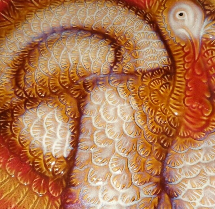 Here is a 13.25" round serving platter that is embossed and shaped like a turkey by Better Home & Garden...perfect center piece for your Thanksgiving table *** I have other pieces of this set up for sale SEE MY STORE FOR MORE...