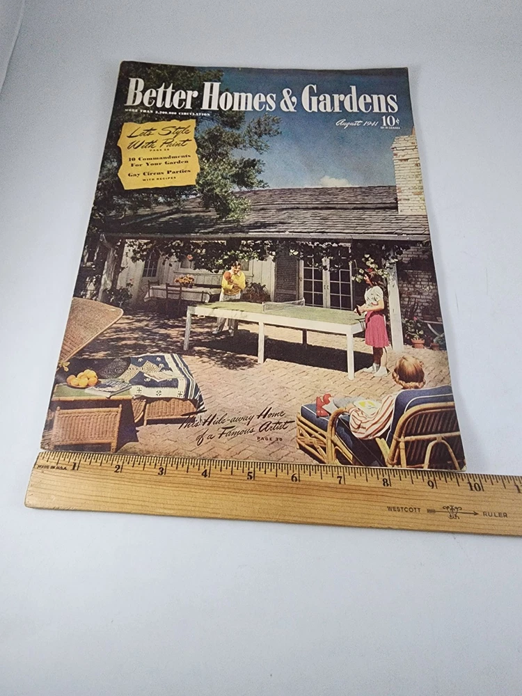 Dive into a piece of history with the August 1941 issue of Better Homes & Gardens magazine. This vintage publication offers a unique snapshot of home and garden trends from over eight decades ago, featuring articles on everything from building and remodeling to furnishing and beautifying your space. Readers will find insights into topics like 'Bildcost Cape Cod in Concrete: Fire and Termite Proof' and '10 Commandments for Banishing Your Garden Pests.' Step back in time with this English language edition that provides not just educational content but also entertaining reads, such as 'Step Right Up Folks!: It's a Circus Party' and 'Business after Pleasure: Home Office Problems Solved.' Even if you're not passionate about the past, the nostalgic allure of this magazine is sure to captivate and inspire. Whether you're a collector or just appreciate the charm of mid-century home aesthetics, this Better Homes & Gardens issue is a delightful throwback. Wonderful advertisements! SEE PHOTOS FOR CONDITION. Please contact us if you have ANY questions about this item! Your satisfaction is important to us! Please check out our store here - NEW ITEMS ADDED DAILY! WE WILL HAPPILY COMBINE SHIPPING! When purchasing multiple items, a refund based on actual shipping cost will be issued within 48 hours after your items are shipped. All items sold "as is" Returns on collectible items will not be accepted without all original packaging if it was included in the sale. If the item is sold as unopened, returns will not be accepted if the item has been opened.