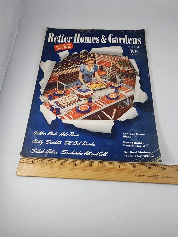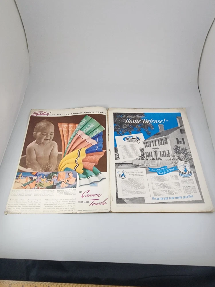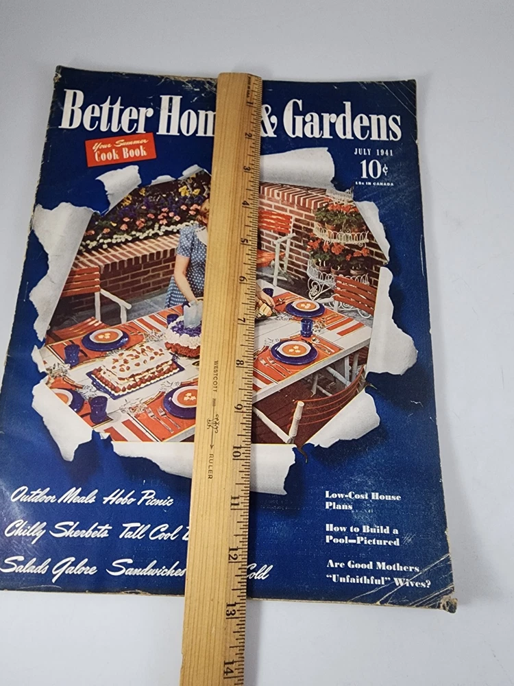 The product is a vintage issue of Better Homes & Gardens magazine from July 1941. This edition features articles on remodeling kitchens, solving window problems, having a hobo picnic, and making jams and jellies for midsummer. The magazine covers topics such as improving gardens, upgrading food and kitchen equipment, renovating homes, and enhancing family spaces. It offers a variety of insights and tips for beautifying and enjoying the home during the summer season. Wonderful advertising in this magazine! SEE PHOTOS FOR CONDITION. Please contact us if you have ANY questions about this item! Your satisfaction is important to us! Please check out our store here - NEW ITEMS ADDED DAILY! WE WILL HAPPILY COMBINE SHIPPING! When purchasing multiple items, a refund based on actual shipping cost will be issued within 48 hours after your items are shipped. All items sold "as is" Returns on collectible items will not be accepted without all original packaging if it was included in the sale. If the item is sold as unopened, returns will not be accepted if the item has been opened.
