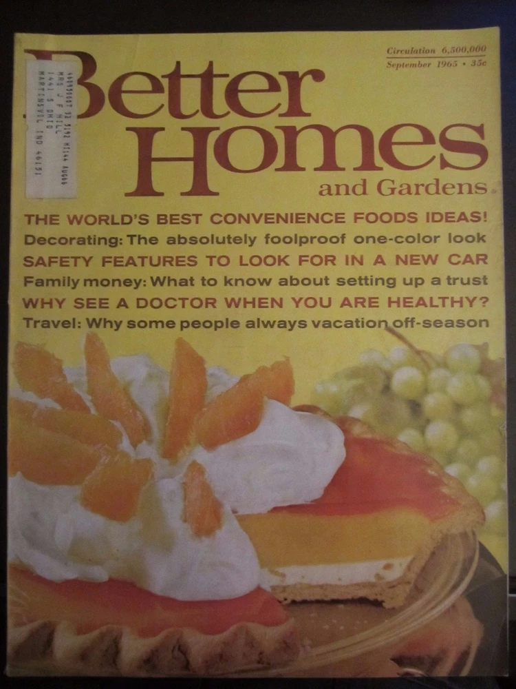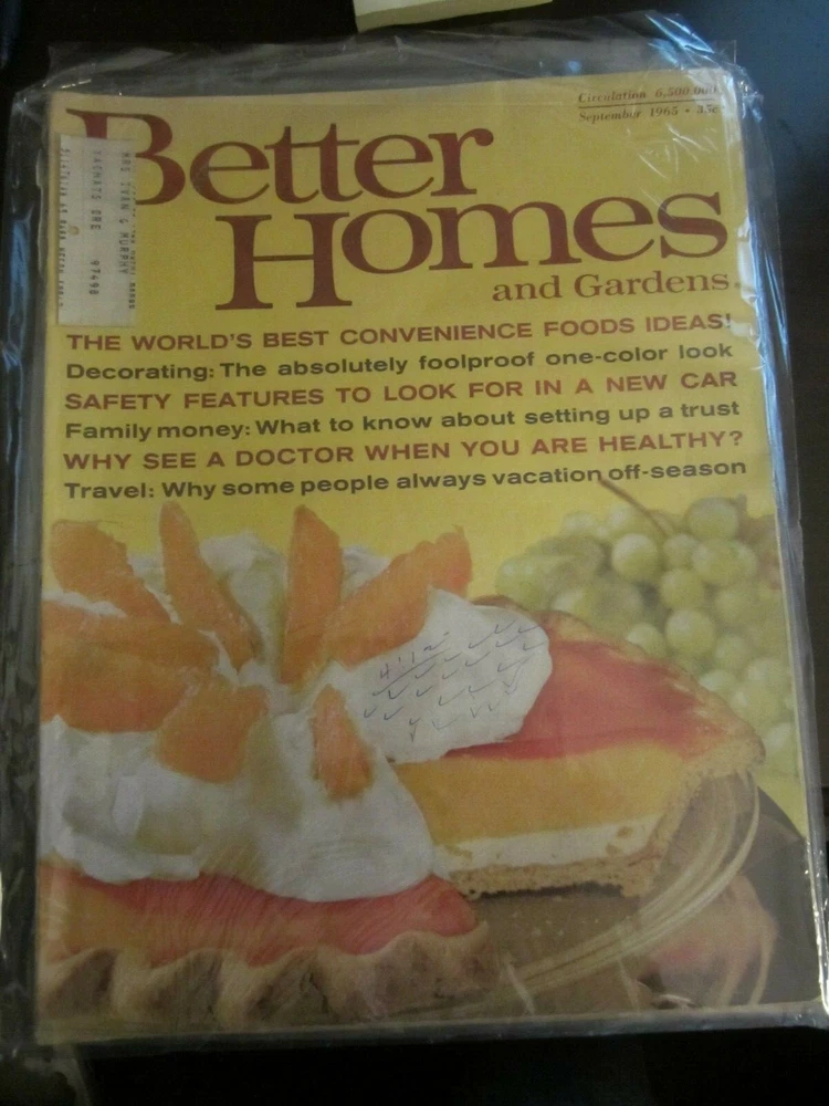 Sept 1965 issue of Better Homes & Garden Magazine . Magazine is in VG condition. Combine shipping on multiple issues. I can ship up to 12 magazines for $14.99 Please note: If purchasing multiple magazine auctions do not pay for them until I send a revised invoice with the correct shipping charges. **If you are having any problems requesting a total for combined shipping on multiple orders please send an offer at the buy price for each magazine you would like to purchase. We will accept the offers and send a new combined shipping invoice.**