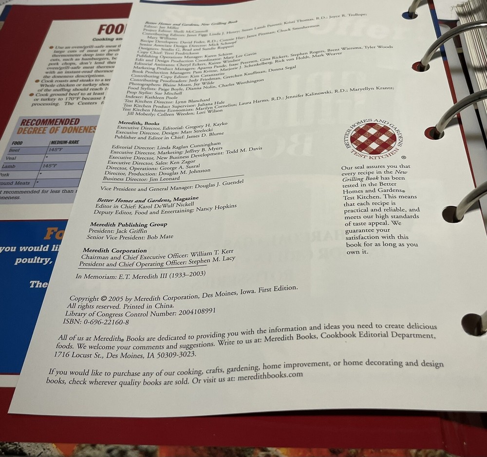 Better Homes & Garden New Grilling Book 5 Ring Binder 2005 BBQ Cookbook. Pre-owned, never used. Very Good Condition. Ships USPS Media Mail....