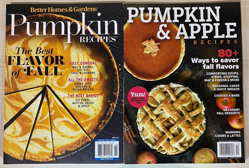 This lot includes two issues of Better Homes & Gardens magazine from 2024, featuring special pumpkin recipes and Apple Lot of 2. The magazines are in physical format and are annual publications. They are written in English and cover cooking topics, specifically focusing on pumpkin recipes. The issues are from the United States and are not subscriptions. The magazines are perfect for anyone interested in cooking and want to try their hand at making delicious pumpkin dishes. The recipes are easy to follow along with and include beautiful photos that will make your dishes look great. Don't miss out on this opportunity to add these special magazines to your collection.