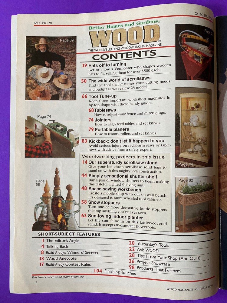 Better Homes Gardens WOOD Magazine October 1996 Tablesaws Jointers Planers Guide
