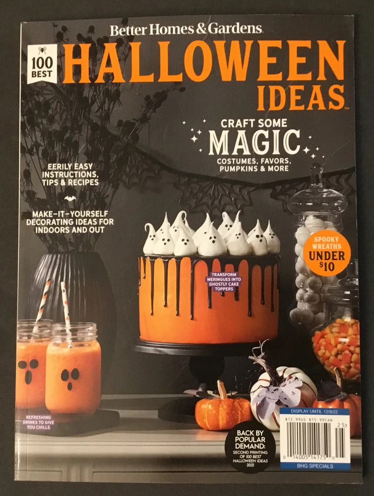 Better Homes & Gardens 100 Best Halloween Ideas 2022. Full of fun and spooky Halloween ideas and recipes to make your Halloween special and memorable. See pictures for details.
