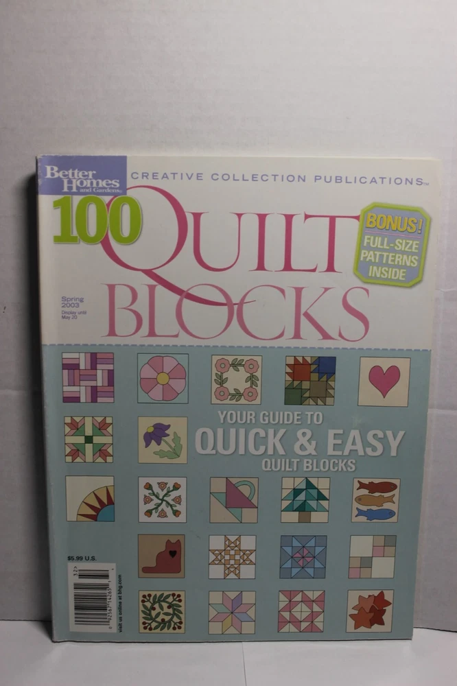 Better Homes & Gardens 100 Quilt Blocks Creative Collection Magazine Spring 2003 Thank you for visiting TaffyKat Collectibles. I offer a variety of pre-owned items including postcards, books, magazines, and collectibles. Please feel free to contact me with any questions. I will combine shipping on multiple purchases.