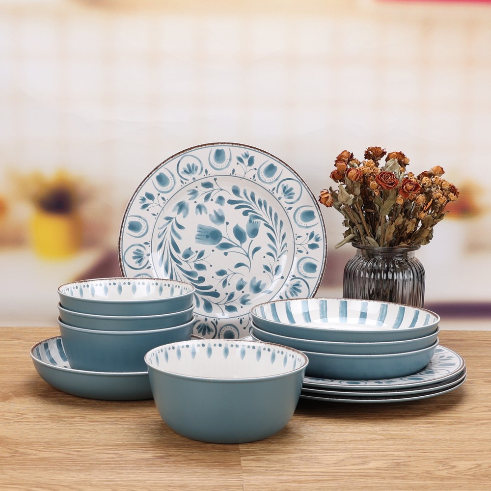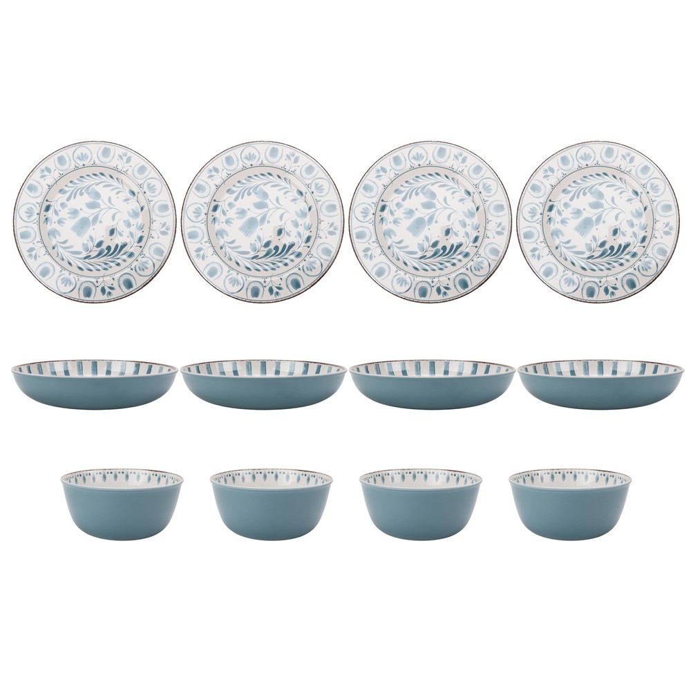 Product details Elevate your dining with the Better Homes & Gardens 12-Piece Bamboo Melamine Dinnerware Set. Durable, eco-friendly, and stylish, perfect for indoor or outdoor meals. Dishwasher safe. Shop now for timeless elegance! Brand: Better Homes & Gardens Color: Blue 12-Piece Set Includes: (4) Dinner Plates, (4) Salad Plates and (4) Cereal Bowls Dishwasher safe, top rack only BPA Free