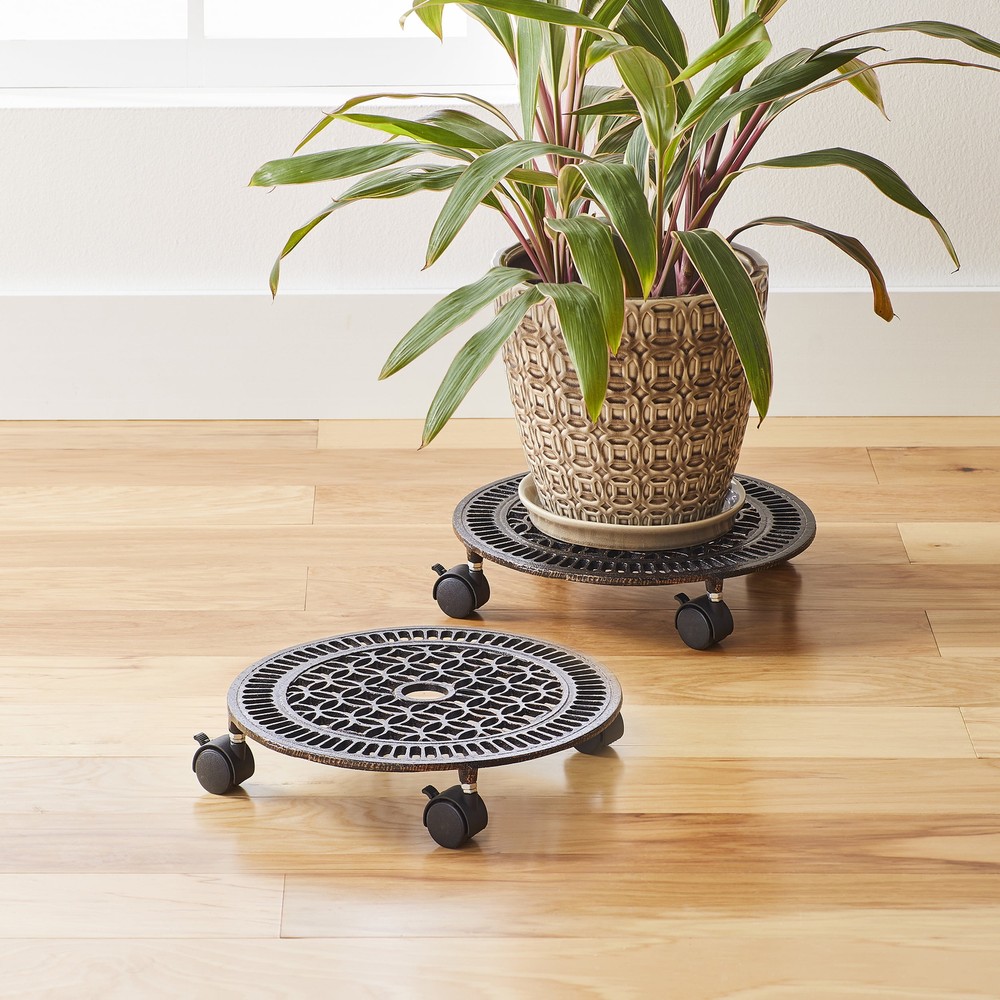 This plant caddy is a game-changer! The sturdy cast iron construction feels premium, and the smooth-rolling wheels make repositioning heavy pots effortless. I love how the powder-coated finish holds up against rain and sun—my outdoor plants stay mobile without rust worries. The locking wheels keep everything secure, and it easily handles my 16-inch pots. Perfect for adding a touch of elegance to my patio while keeping plants easy to move. Highly recommend for both indoor and outdoor use!