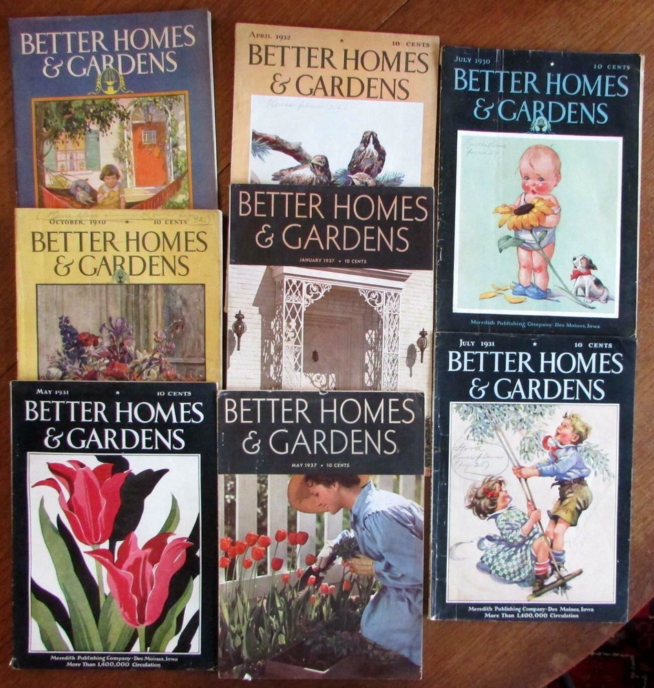Better Homes & Gardens 1928-1937 Lot x 8 magazines many color ads fun! Better Homes & Gardens 1928-1937 Lot x 8 magazines many color ads fun! Click here to view a short video presentation of this item. Better Homes & Gardens from 1928-1931. Lot of eight (8) issues. All appear mostly complete (one has corner of one page torn away), mostly clean and well preserved examples of inherently fragile periodicals. Most magazines of this era were recycled during various paper drives of WW II, all loose survivals constitute 1 in 1000 or perhaps much more. Wonderful extensive period advertising throughout, including many great full page color ads for lead paint, Wheaties, home cleaners, ketchup, food, all types of products, etc. All issues are scarce and pleasing to browse/ read, together lot is utterly unique. Short video captures condition much better than words. Please watch prior to purchase to ensure a clear understanding of the lot. Nicer lot than typical for the type. Issues measure: 12" H X 8 1/2" W. Stack measures: 1 1/2". Printed on coated paper, magazines are quite heavy. [V1043]. Guaranteed authentic - old. We do not sell modern reprints.
