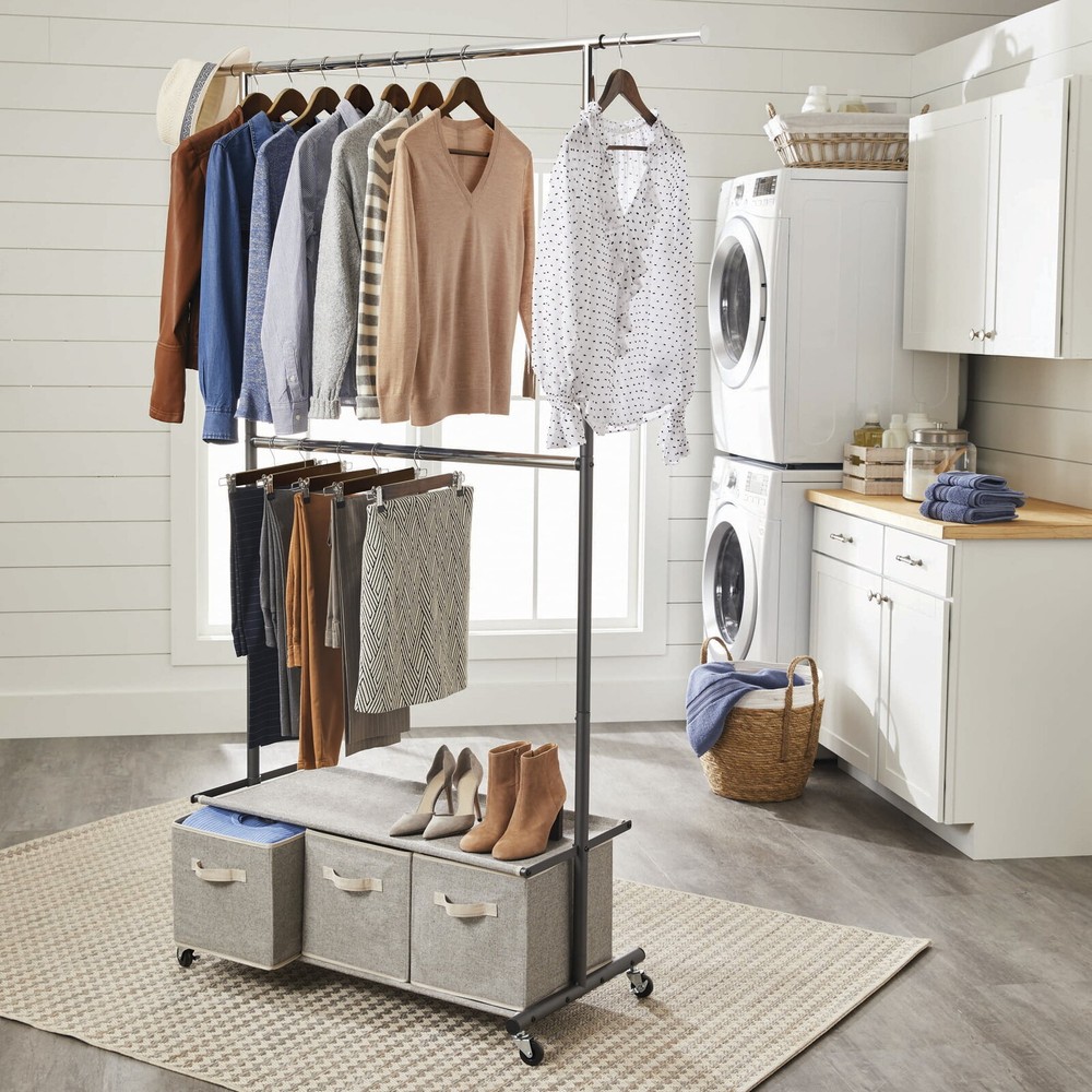 Portable Cast Iron Hibachi Grill Tabletop Charcoal BBQ Camping Outdoor Black Use 60.25 USD Free shipping Allergen Reducing High Protein Cat Dry Food Chicken Rice Nutrition Formula 3.5lb 29.0 USD Free shipping Complete Balanced Nutrition Wet Dog Food Real Meat Veggies 3 oz Cans (24 Pack) 39.45 USD Free shipping Small Breed Dry Dog Food Chicken Barley Brown Rice Recipe Protein-rich 12 lb Bag 44.14 USD Free shipping Immune Health Wet Dog Food Chicken Lamb Spinach Grain-Free 13 oz Cans (12 Pack) 36.04 USD Free shipping Hot Tender Adult Dry Cat Food for Adult Cats High Protein Real Chicken 22 lb Bag 64.76 USD Free shipping Naturals Adult Dry Cat Food Whole Grain Indoor Chicken Turkey Kibble 18 lb. Bag 31.84 USD Free shipping Grain Free Salmon Shrimp Wet Cat Food Pate 3oz 24 Pack Healthy Nutrition New 26.08 USD Free shipping 10Amp 1200W Corded Angle Grinder Polishing Cutting Tool Non-Slip Handle New 48.39 USD Free shipping MTD 46 Inch Deck Pulley Drive Belt Replacement Riding Mowers 754-0349 112-0317 30.83 USD Free shipping Originals Dry Dog Food Farm Raised Beef High-protein Healthy Muscles 36 lb Bag 48.13 USD Free shipping Tender Bites Chicken Steak Flavor Dry Dog Food 100% Complete Nutrition 30 lb Bag 37.03 USD Free shipping Stylishly add extra garment storage to any space with this Charleston Double Rod Garment Rack with 3 Drawer Organizer from the home experts at Better Homes and Gardens. Equipped with both hanging rods and storage bins, this smartly designed organizational piece boasts 2 tiers of rods to utilize, allowing you to hang anything from long dresses and pants to shirts and much more. Perfect for a bedroom that is short on closet space, or perhaps has no closet at all, this Double Rod Garment Rack is ultra-easy to assemble and features rolling casters that allow for effortless portability as well as lock in place for added stability and safety. Whether for a bedroom, guestroom or even a college dorm room, this chic garment rack from Better Homes and Gardens is an optimal choice for ridding your space of clutter and disorganization. Keep your beloved clothing organized and in the best possible condition using this Charleston Double Rod Garment Rack with 3 Drawer Organizer from Better Homes and Gardens. Rolling garment rack includes 2 tiers of hanging rods Includes 3 storage bins for added organizational space, each with fabric pulls for easy access Shoe?s can be neatly stowed on top of the 3 bin organizer under the middle hanging garment bar Sophisticated and neutral grey frame and bin color Designed on four rolling casters for easy maneuvering?casters lock for safety and stability Top rod extends outward for added space on both sides Simple assembly required?includes all hardware necessary Perfect for use in a small-closet or no-closet bedroom?great for a guest or dorm room You may also like Metal Indoor Outdoor Dining Chair Commercial Grade Durable Weather Resistant New 113.02 USD Free shipping Industrial Side Table 2-Tier Nightstand Steel Frame Mesh Shelf Adjustable Feet 64.99 USD Free shipping 2 Set 2.5-10" Off-Road Tire Inner Tube Set Comfort Safe Rear Tire Heavy Duty 58.49 USD Free shipping Outdoor Indoor Round Tufted Seat Cushions 2 Pack Plush Fill Reversible 19inch US 66.72 USD Free shipping Compact Computer Cart Storage Adjustable Shelf Locking Wheels Durable MDF Frame 85.79 USD Free shipping Ergonomic Kneeling Chair Rocking Stool Back Pain Relief Office Home Use 103.99 USD Free shipping Expandable Over Sink Dish Drying Rack Stainless Steel 3-Tier Storage Organizer 67.85 USD Free shipping Stainless Steel Medicine Cabinet Lockable Safety Glass Wall Storage Shelves New 63.69 USD Free shipping Upholstered Round Foot Rest Velvet Tufted Ottoman W/ Storage Living Room Bedroom 90.99 USD Free shipping Stackable Plastic Storage Bins 3 Pack Collapsible Organizer Folding Boxes New 49.57 USD Free shipping Expandable Metal Closet Rack Adjustable Shelves 2 Hanging Rods Storage Organizer 60.27 USD Free shipping Luxury Long Bath Runner Rug Soft Thick Absorbent Non Slip Quick Dry Mats 24x60" 51.89 USD Free shipping