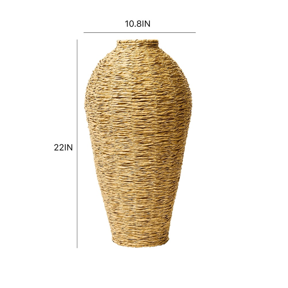 Add nature-inspired beauty to any room with the Better Homes & Gardens 22" Woven Faux Seagrass Vase. This large decorative vase features intricately woven faux seagrass, showcasing organic texture and earthy tones for a relaxed, handcrafted look. Use this 22-inch tall decorative vase to display your favorite dried or faux plants in your entryway, dining room, living room, and more. Mix and match with more Better Homes & Gardens vases and planters to create a stylish look with varying heights, colors, and shapes. Large indoor urn floor vase Features an intricately woven design for a relaxed, handcrafted look Made with faux seagrass Dimensions: 10.8-inch diameter and 22-inch height Suitable for displaying dried and faux plants – vase cannot hold water Decorative floor vase for your entryway, dining room, living room, and more Care instructions: Wipe clean as needed. Each decorative vase is sold separately