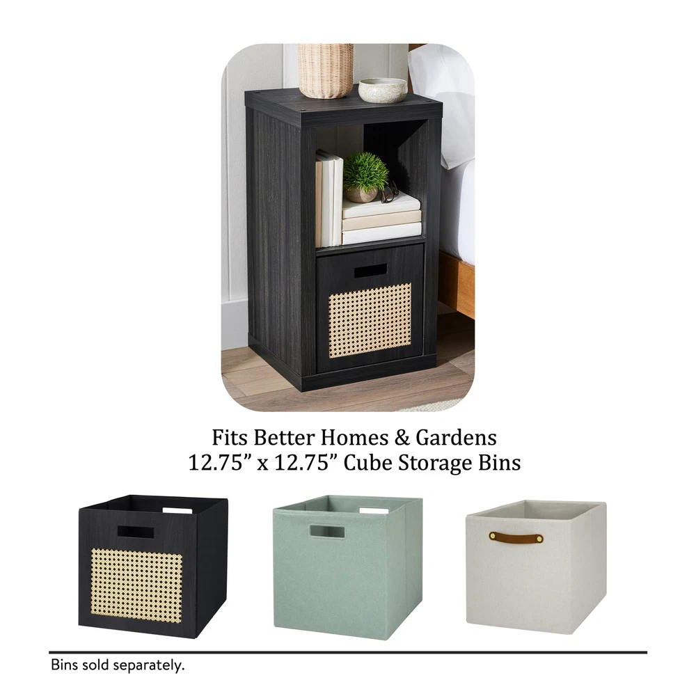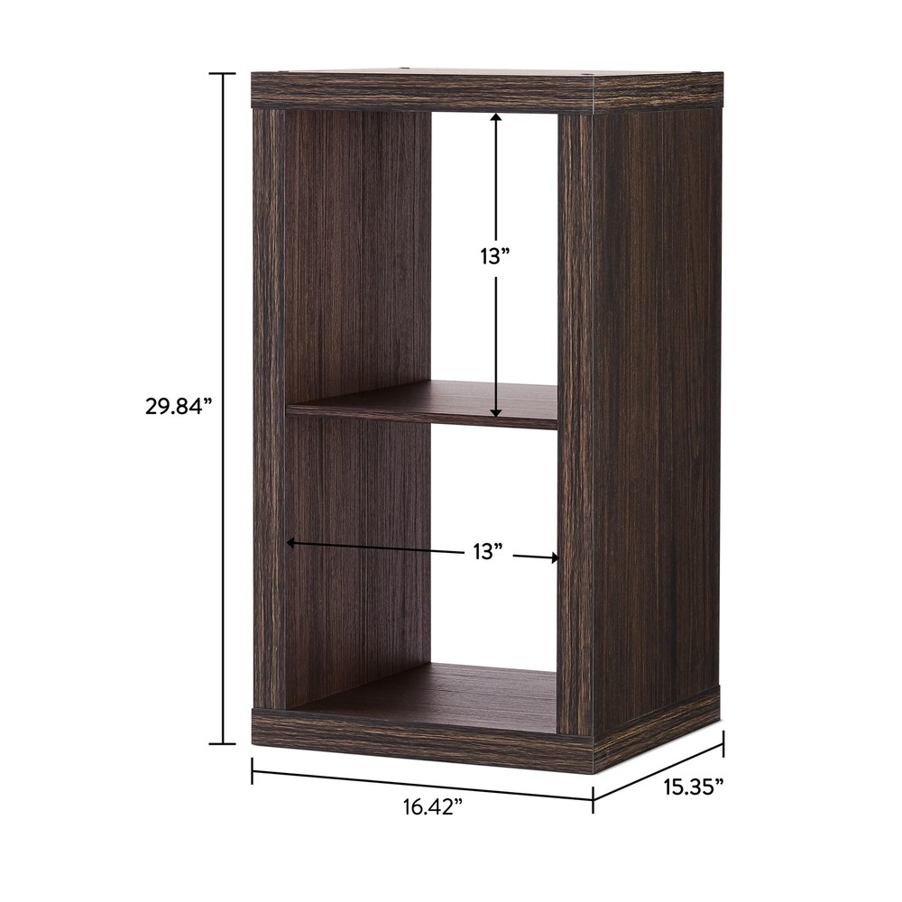 Add function and style to your home with the Better Homes & Gardens 2-Cube Storage Organizer. Available in multiple finishes, including both solid and wood grain options, this cube organizer features two 13" x 15" x 13" compartments, the perfect size to display books, collectibles, photos, artwork, storage bins and baskets. An open back design makes it easy to manage cords and cables. This sturdy bookcase can stand vertically or horizontally to best suit your needs and space. The top panel supports up to 148 lbs when vertical and 44 lbs when horizontal. Combine it with other Better Homes & Gardens Cube Organizers and Cube Storage Bins (sold separately) to create a complete, customized storage and display system. Easy to assemble, the Better Homes & Gardens 2-Cube Storage Organizer is perfect for your office, living room, den, playroom and more. Modern, open back design for easy cord management Features two 13" x 15" x 13" compartments Compatible with Better Homes & Gardens Cube Storage Bins (sold separately) Versatile design allows for vertical or horizontal placement Top panel can support up to 148 lbs when vertical, 44 lbs when horizontal Each cube can support up to 22 lbs Can be combined with other Better Homes & Gardens Cube Storage Organizers (sold separately) Materials: MDF, particle board, paperboard and iron Easy to assemble with included instructions (no additional tools required) Package size: 37.01" x 6.28" x 18.11" (25.21 lbs) Assembled weight: 20.02 lbs Assembled dimensions: 16.42" W x 15.35" D x 29.84" H