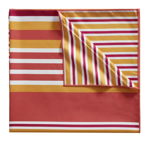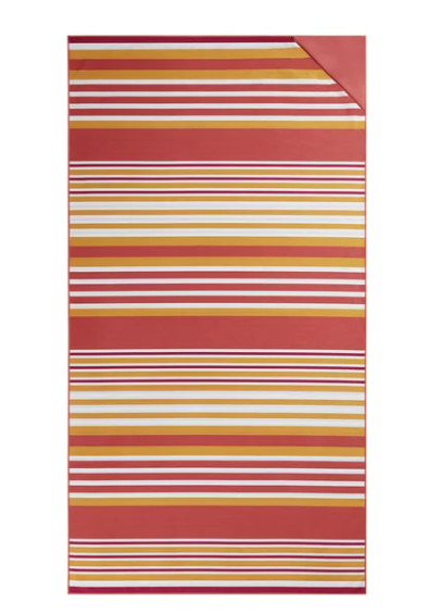Hit the beach in style with the Better Homes & Gardens Quick Dry Travel Beach Towel. This reversible travel beach towel is oversized but conveniently compact enough to take on the go – it even comes with a reusable tote bag! Another benefit of this beach towel's lightweight construction is that it dries faster than traditional terrycloth beach towels. Unlike thick, looped towels that can trap sand, this sand-free beach towel has a smooth surface that makes it easy to brush the sand away. You can keep this beach towel looking and feeling fresh by machine washing it in cold water and tumble dry it on a low setting.
