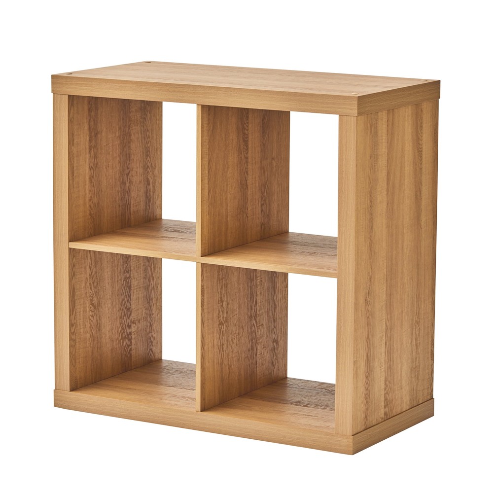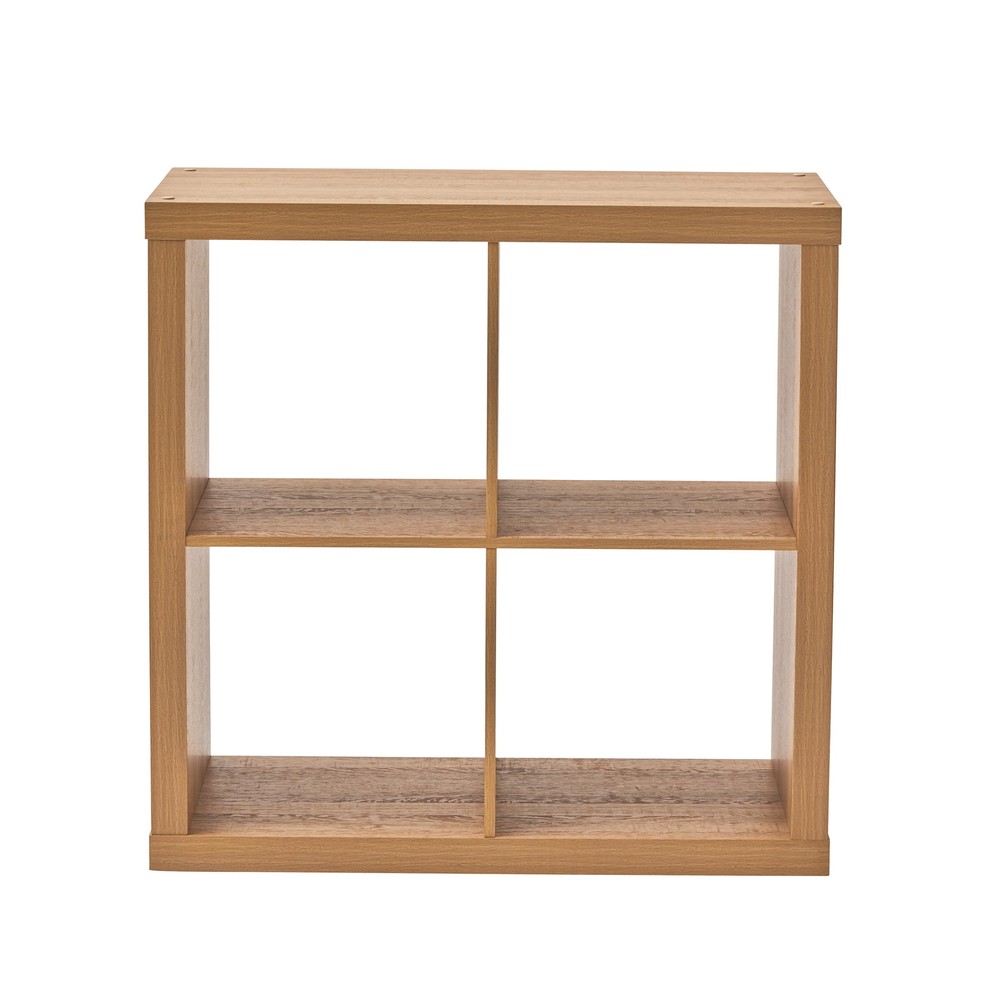 Add function and style to your home with the Better Homes & Gardens 4-Cube Storage Organizer. Available in multiple finishes, including both solid and wood grain options, this cube organizer features four 13" x 15" x 13" compartments in a 2x2 configuration, the perfect size to display books, collectibles, photos, artwork, storage bins and baskets. An open back design makes it easy to manage cords and cables. The top panel of this sturdy bookcase supports up to 100 lbs and each cube space supports up to 30 lbs. Combine it with other Better Homes & Gardens Cube Organizers and Cube Storage Bins (sold separately) to create a complete, customized storage and display system. Easy to assemble, the Better Homes & Gardens 4-Cube Storage Organizer is perfect for your office, living room, den, playroom and more. Features four 13" x 15" x 13" compartments Modern, open back design for easy cord management Compatible with Better Homes & Gardens Cube Storage Bins (sold separately) Top panel can support up to 100 lbs and each cube supports up to 30 lbs Can be combined with other Better Homes & Gardens Cube Storage Organizers (sold separately) Materials: MDF, particle boardEasy to assemble with included instructions and video assembly guide (no additional tools required) Package size: 34.39" x 8.58" x 18.11" (37.47 lbs) Assembled weight: 31.7 lbs Assembled dimensions: 30.16" W x 15.35" D x 29.84" H