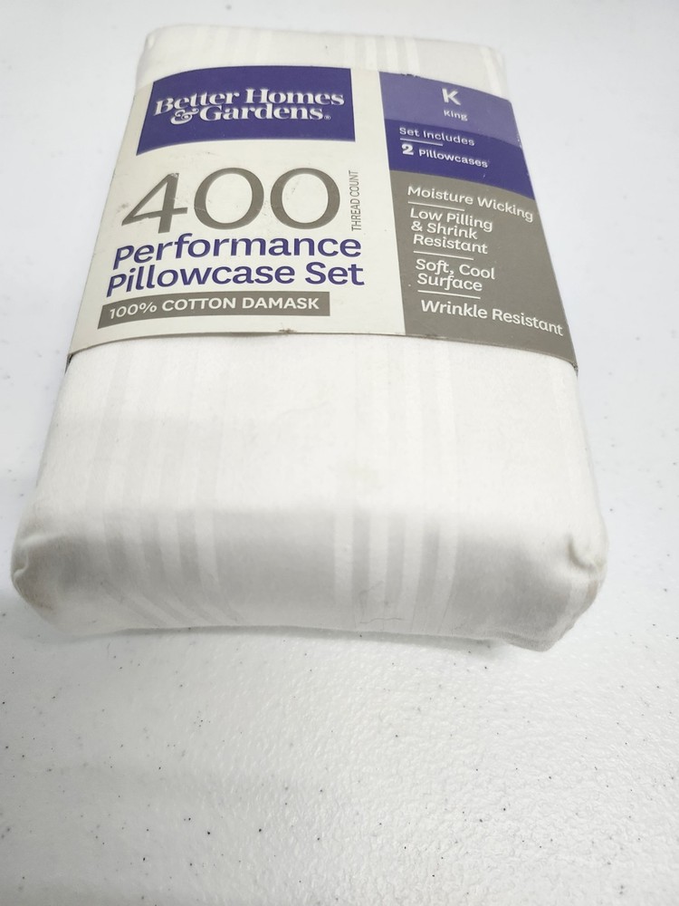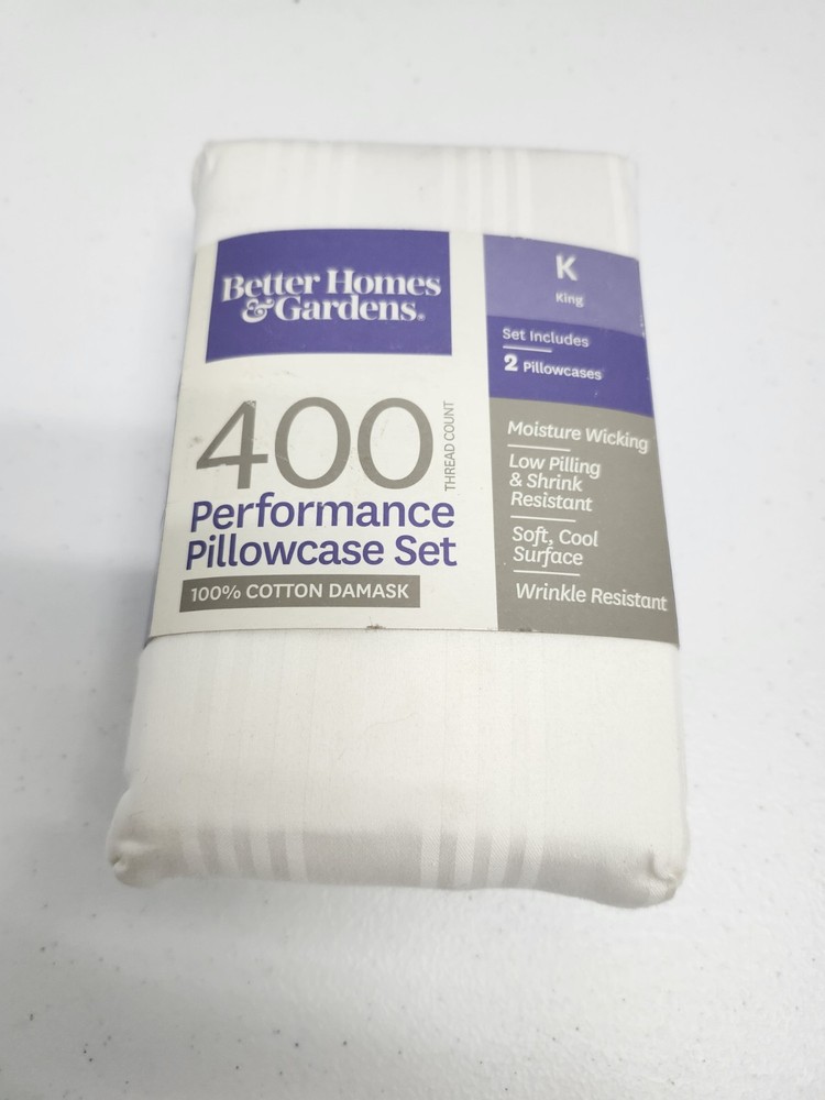 The Better Homes & Gardens 400 Performance Pillow Case Set features a modern white on white stripe pattern, perfect for adding a touch of style to any bedroom. Made from soft damask material with a thread count of 201-400, these rectangular pillow cases are 20 x 36 inches in size and designed for adults. The set includes two pillow cases with a no closure design, making it easy to use and maintain. Ideal for a contemporary bedroom decor, this Better Homes & Gardens set is a comfortable and stylish addition to any home.