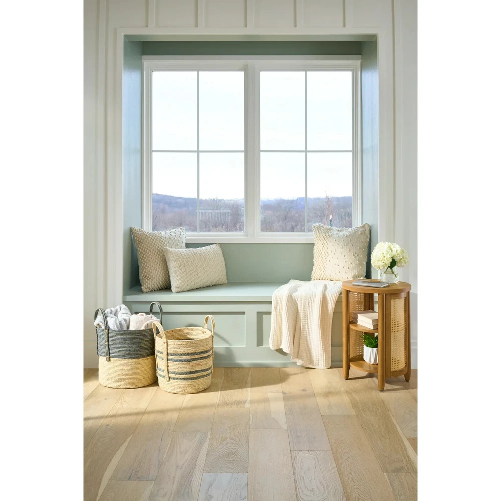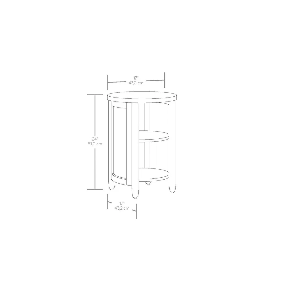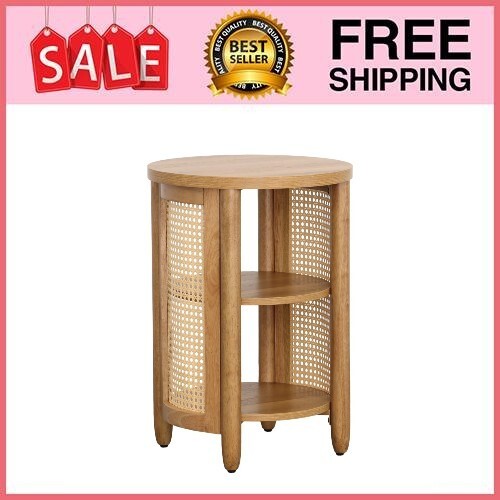 Assembled Dimensions: 17.01" L X 17.01" W X 24.02" H Two shelves for storage and display Side panels feature decorative rattan insert Finished on all sides Solid Wood Accents Light Honey finish Model #: 434752 Box Dimensions: 27.52" L x 19.25" W x 8.50" H For additional questions or any issues, please contact the manufacturer at 1-800-523-3987. Be sure to check out the Better Homes & Gardens collection for more great items!