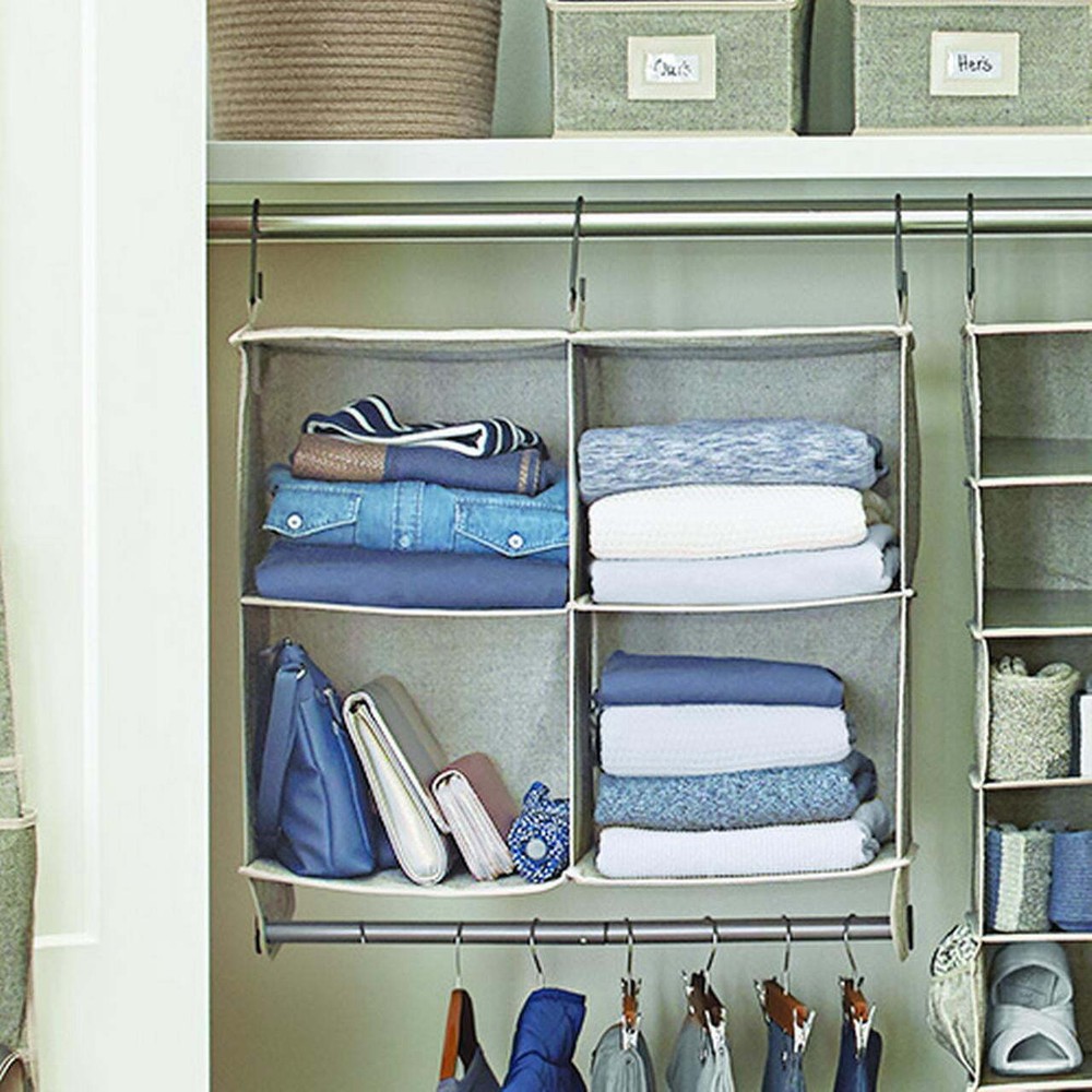 This hanging organizer is a game-changer for small closets! The four spacious shelves hold all my folded clothes neatly, and the bottom rack keeps my hung items tidy. The sturdy metal frame and durable fabric make it strong yet lightweight. It arrived fully assembled, so I just hung it up and started organizing right away—no hassle! Perfect for maximizing vertical space and keeping everything visible. Love how it declutters my closet effortlessly!