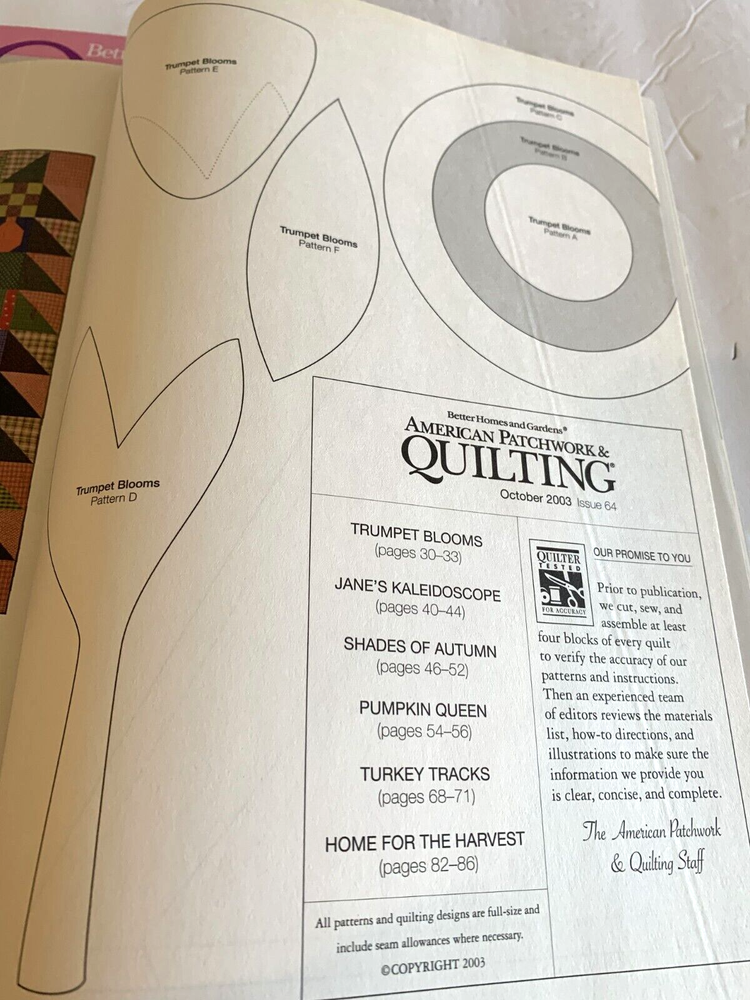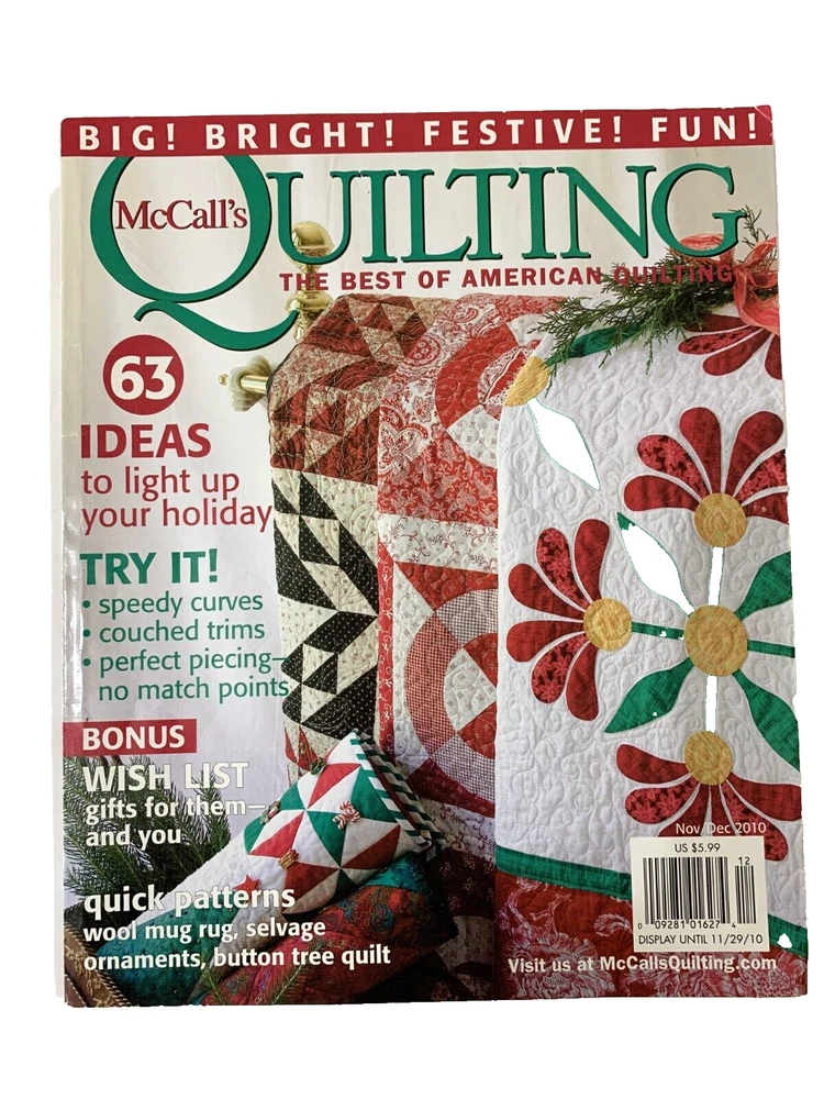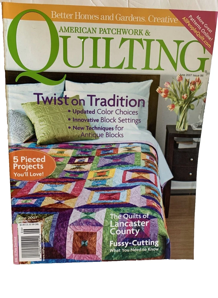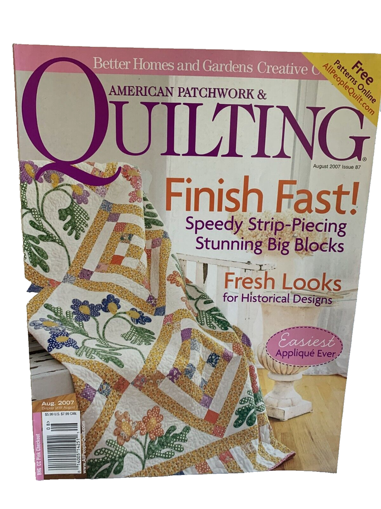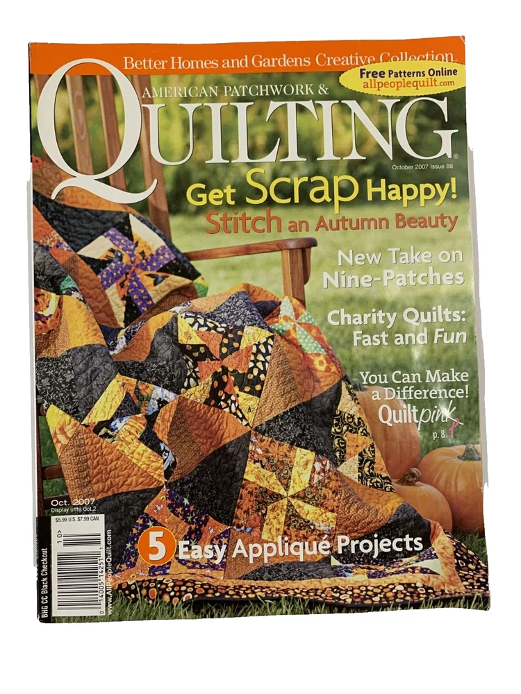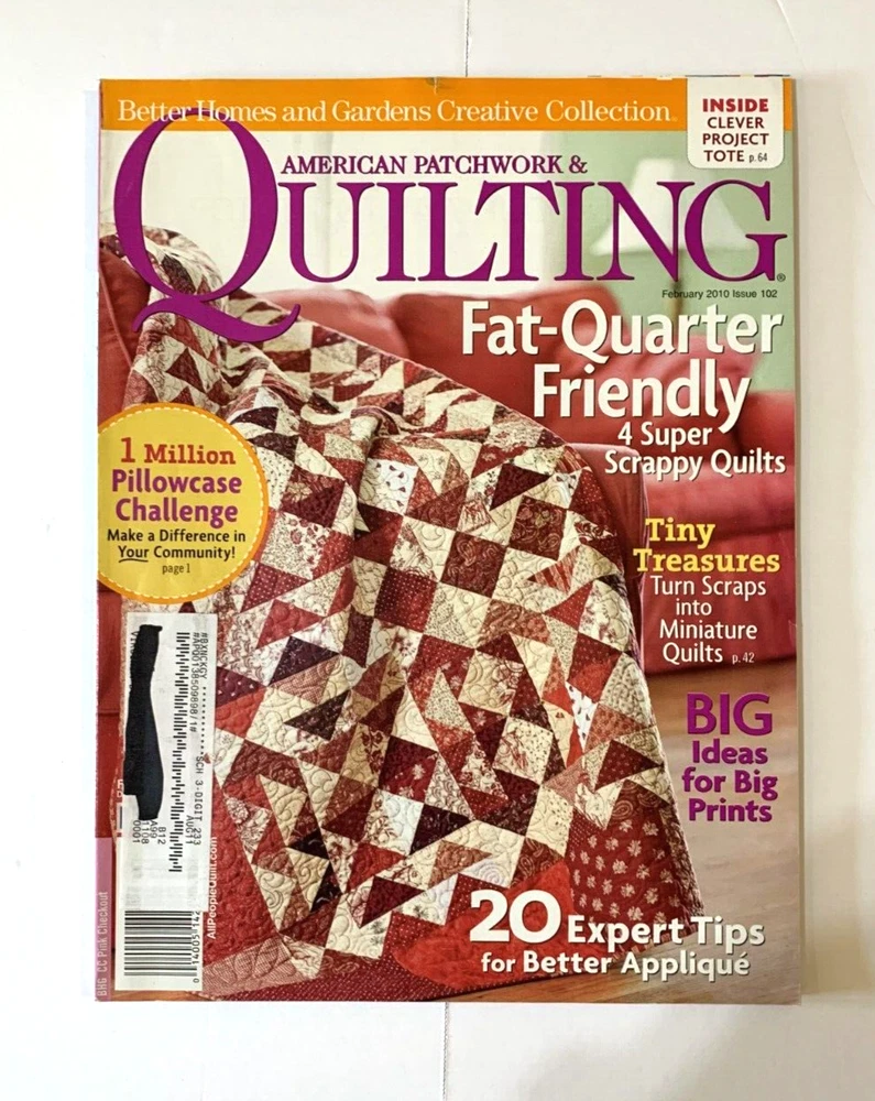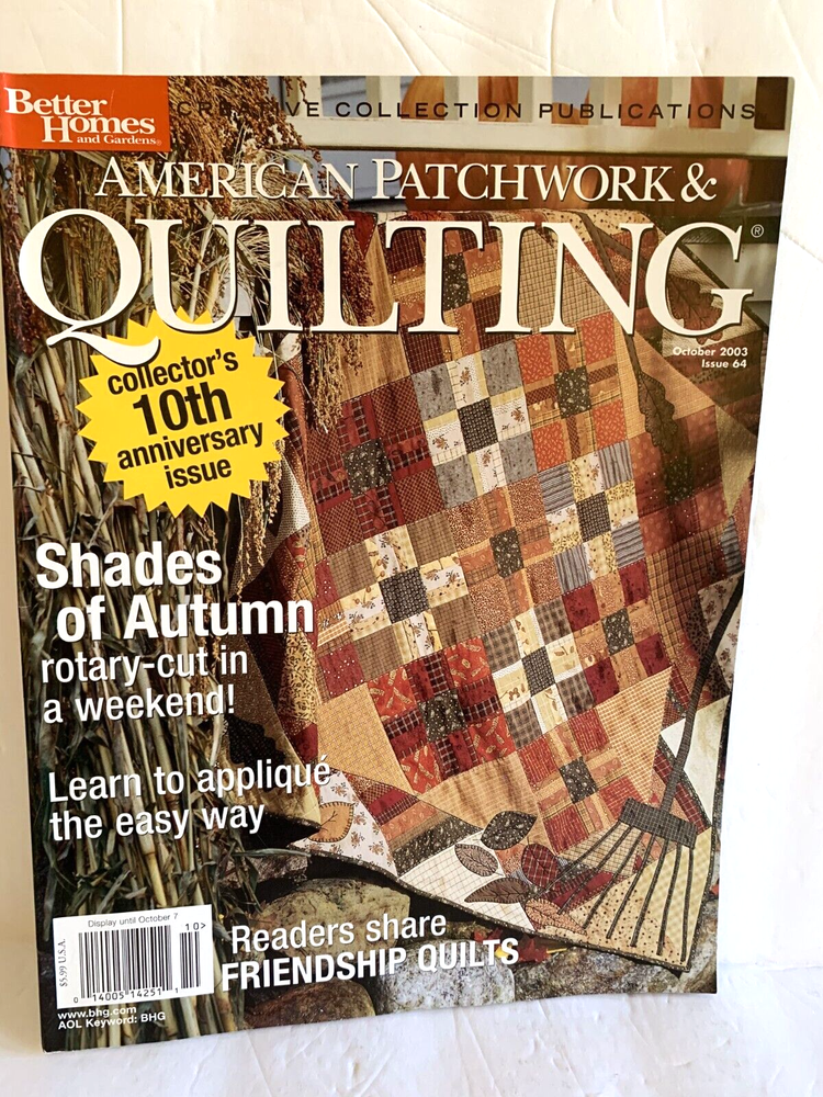 Lot of 9 Quilting Magazines Lot of 8 Better Home and Gardens Creative Patchwork & Quilting Magazines October 2003 Issue 64, June 2007 Issue 86, August 2007 Issue 87, December 2009 Issue 101, February 2010 Issue 102, April 2010 Issue 103, and April 2011 Issue 109, October 2007 issue 88. All with Patterns Some have name and address crossed out-see photos Lot of 1 McCall's Quilting Magazine November/December 2010 issue Please visit my eBay store-Snookie Found Your Treasure for more great items