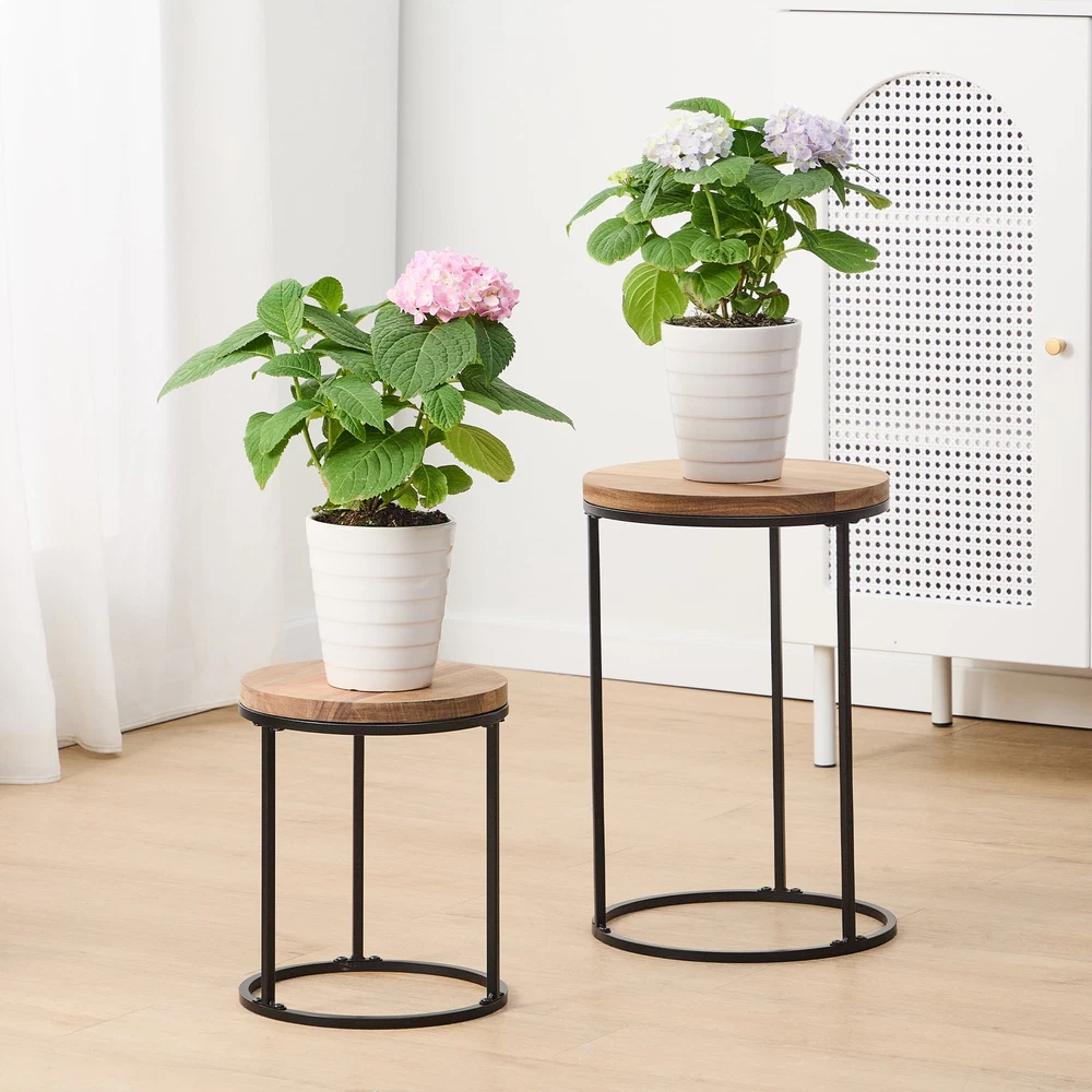 Absolutely love these plant stands! The acacia wood gives them a gorgeous natural look, and the iron legs keep them sturdy. Super easy to assemble—had them ready in minutes. Perfect for my indoor herbs and outdoor flowers, plus they’re weather-resistant. Lightweight yet durable, and they add a touch of rustic charm anywhere. Highly recommend!