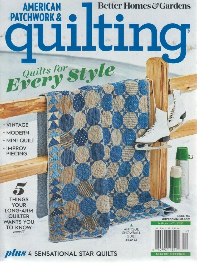 Better Homes & Gardens American Patchwork & Quilting Changes Everything Feb 2020 Magazine has scuff marks, creases, and edge wear. Cover is torn. PLEASE ASK ALL QUESTIONS BEFORE ORDERING WE HAVE A 2 DAY HANDLING TIME THAT DOES NOT INCLUDE HOLIDAYS OR WEEKENDS WE USE USPS FOR ALL OUR SHIPPING MAGAZINES WILL BE SHIPPED IN AN UNPADDED POLY ENVELOPE. IF YOU WISH TO HAVE A DIFFERENT SHIPPING PROCESS PLEASE DO SO WHEN CHECKING OUT VIA EMAIL. WE WILL TRY OUR BEST TO MAKE YOU HAPPY. YOU WILL BE RESPONSIBLE FOR THE COST OF ALTERNATE SHIPPING. OUR STANDARD SHIPPING IS 2-9 DAYS AFTER ORDERING AND HANDLING TIME. ON TEXTBOOKS THE ISBN USUALLY FOLLOWS THE TITLE. WE NO LONGER ACCEPT RETURNS UNLESS IT FALLS UNDER EBAY POLICY, OTHER RETURNS WE BILL SUBJECT TO A 20% RESTOCKING FEE WE APPRECIATE OUR CUSTOMERS AND WILL STRIVE TO GIVE YOU THE BEST SERVICE POSSIBLE! PLEASE ASK ALL QUESTIONS BEFORE ORDERING WE HAVE A 2 DAY HANDLING TIME THAT DOES NOT INCLUDE HOLIDAYS OR WEEKENDS WE USE USPS FOR ALL OUR SHIPPING MAGAZINES WILL BE SHIPPED IN AN UNPADDED POLY ENVELOPE. IF YOU WISH TO HAVE A DIFFERENT SHIPPING PROCESS PLEASE DO SO WHEN CHECKING OUT VIA EMAIL. WE WILL TRY OUR BEST TO MAKE YOU HAPPY. YOU WILL BE RESPONSIBLE FOR THE COST OF ALTERNATE SHIPPING. OUR STANDARD SHIPPING IS 2-9 DAYS AFTER ORDERING AND HANDLING TIME. ON TEXTBOOKS THE ISBN USUALLY FOLLOWS THE TITLE. WE NO LONGER ACCEPT RETURNS UNLESS IT FALLS UNDER EBAY POLICY, OTHER RETURNS WE BILL SUBJECT TO A 20% RESTOCKING FEE WE APPRECIATE OUR CUSTOMERS AND WILL STRIVE TO GIVE YOU THE BEST SERVICE POSSIBLE! Powered by SixBit's eCommerce Solution