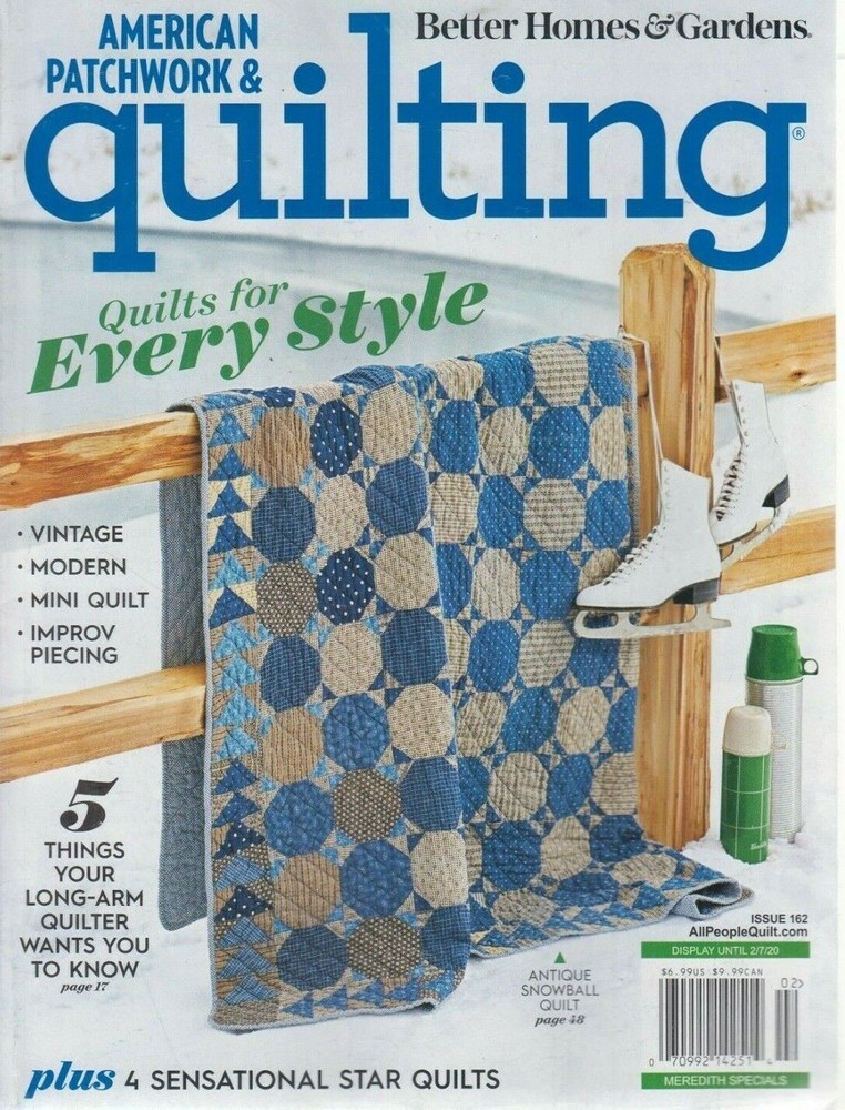 Better Homes & Gardens American Patchwork & Quilting Issue 162 Feb 2020 Magazine has a few scuff marks, creases, and some edge wear. PLEASE ASK ALL QUESTIONS BEFORE ORDERING WE HAVE A 2 DAY HANDLING TIME THAT DOES NOT INCLUDE HOLIDAYS OR WEEKENDS WE USE USPS FOR ALL OUR SHIPPING MAGAZINES WILL BE SHIPPED IN AN UNPADDED POLY ENVELOPE. IF YOU WISH TO HAVE A DIFFERENT SHIPPING PROCESS PLEASE DO SO WHEN CHECKING OUT VIA EMAIL. WE WILL TRY OUR BEST TO MAKE YOU HAPPY. YOU WILL BE RESPONSIBLE FOR THE COST OF ALTERNATE SHIPPING. OUR STANDARD SHIPPING IS 2-9 DAYS AFTER ORDERING AND HANDLING TIME. ON TEXTBOOKS THE ISBN USUALLY FOLLOWS THE TITLE. WE NO LONGER ACCEPT RETURNS UNLESS IT FALLS UNDER EBAY POLICY, OTHER RETURNS WE BILL SUBJECT TO A 20% RESTOCKING FEE WE APPRECIATE OUR CUSTOMERS AND WILL STRIVE TO GIVE YOU THE BEST SERVICE POSSIBLE! PLEASE ASK ALL QUESTIONS BEFORE ORDERING WE HAVE A 2 DAY HANDLING TIME THAT DOES NOT INCLUDE HOLIDAYS OR WEEKENDS WE USE USPS FOR ALL OUR SHIPPING MAGAZINES WILL BE SHIPPED IN AN UNPADDED POLY ENVELOPE. IF YOU WISH TO HAVE A DIFFERENT SHIPPING PROCESS PLEASE DO SO WHEN CHECKING OUT VIA EMAIL. WE WILL TRY OUR BEST TO MAKE YOU HAPPY. YOU WILL BE RESPONSIBLE FOR THE COST OF ALTERNATE SHIPPING. OUR STANDARD SHIPPING IS 2-9 DAYS AFTER ORDERING AND HANDLING TIME. ON TEXTBOOKS THE ISBN USUALLY FOLLOWS THE TITLE. WE NO LONGER ACCEPT RETURNS UNLESS IT FALLS UNDER EBAY POLICY, OTHER RETURNS WE BILL SUBJECT TO A 20% RESTOCKING FEE WE APPRECIATE OUR CUSTOMERS AND WILL STRIVE TO GIVE YOU THE BEST SERVICE POSSIBLE! Powered by SixBit's eCommerce Solution