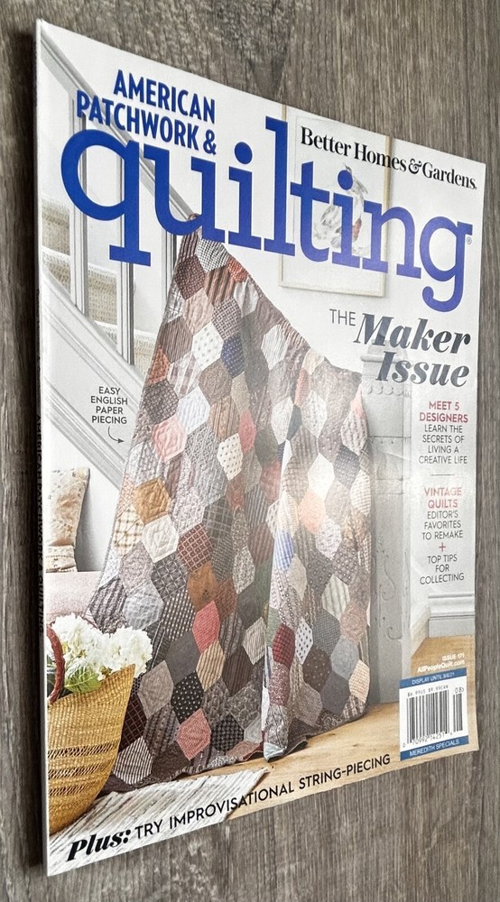 Occasion : Creative Retreats, Summer Sewing Projects, Quilter’s Inspiration, DIY Makerspace Vibes, Vintage Quilt Collecting Maker life, creative quilting, vintage remakes, English paper piecing, string-pieced quilts, editor’s picks, collectible quilts, improvisational sewing Description: Celebrate creativity in the August 2021 Maker Issue of American Patchwork & Quilting ! Featuring English paper piecing, improvisational string-piecing, 5 inspiring designers, and tips for collecting and remaking vintage quilts. Features: A tribute to creativity—this Maker Issue inspires with vintage charm and modern skill. Cover is excellent Inside pages are excellent No rips or writing Like New. It's in excellent condition. All items are carefully photographed and stored in clear poly bags in a climate-controlled, pet-free, child-free, and smoke-free facility. If you have any questions or need additional information, please feel free to contact us.