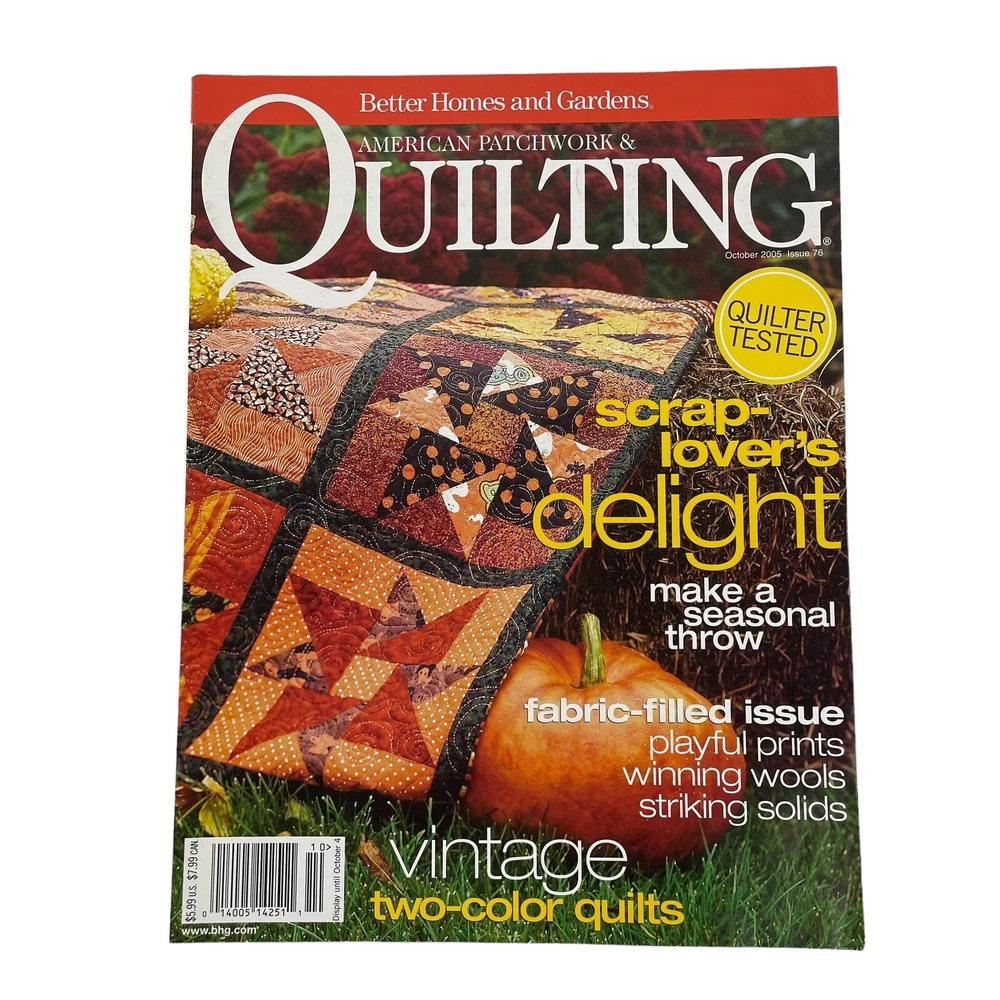 This vintage 2005 collection of Better Homes & Gardens quilting magazines is a treasure trove for craft lovers! Despite minor wear from age, the pages are intact and packed with inspiring patterns, tips, and creative ideas. Perfect for quilters who appreciate classic designs or want to explore retro projects. The smoke-free condition is a nice bonus. A fantastic find for anyone passionate about patchwork!