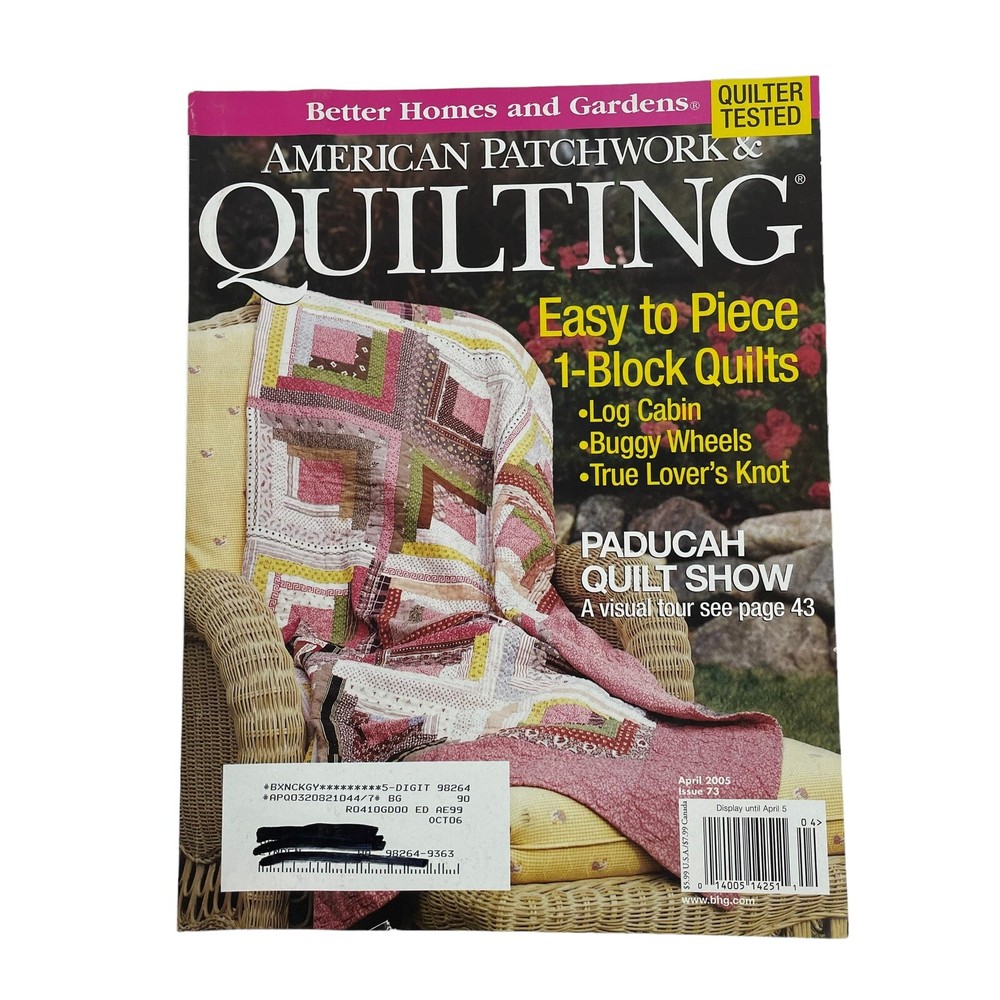 You are purchasing: Better Homes & Gardens American Patchwork & Quilting Magazines Full Year 2005 Features: In good pre-owned condition. Magazines may have some bent, creased, or small tears from normal use and shelf wear but appear to be complete and in good condition. Comes from a smoke free home. Please see all photos for closer details. Thank you for supporting JUST HUMBLE CREATIONS!!