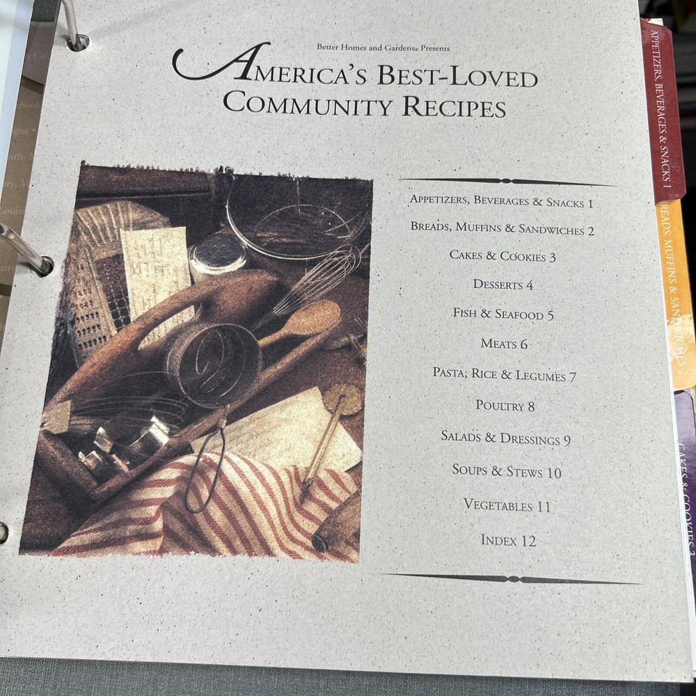 All Items are Guaranteed ~ Free Returns For Any Reason We Offer Combined Shipping On All Items Fast Shipping within 24 Hours (Excluding Sundays and Holidays) Buy 2 Get 1 Free on all Books and Media Discover a timeless collection of delicious recipes in this vintage hardcover cookbook, "America's Best Loved Community Recipes" by Better Homes & Gardens. This book features ring/wire bound pages filled with easy-to-follow instructions for baking, beverages, and classic dishes that will surely become a staple in your kitchen. With a focus on American regional cuisine, this cookbook includes a variety of recipes that have stood the test of time. The book also features beautiful illustrations and tips from the Better Homes & Gardens Test Kitchen. 3 Ring Binder Book 1 contains Sections 1 thru 4 3 Ring Binder Book 2 contains Sections 5 thru 12
