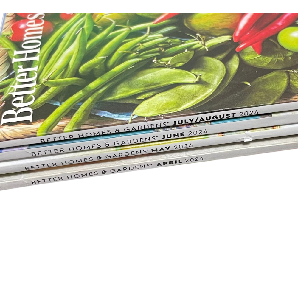 Discover the latest edition of Better Homes & Gardens Magazine, featuring a set of 4 magazines for 2024 packed with tips and ideas for home decor, gardening, and food. Each magazine includes a Cookbook section with amazing healthy recipes for each month, and of course fabulous home decor ideas and enlightening articles. This set includes April - Here Come the Sun; May - Make Your Mark; June - Your Summer Party Playbook; and July/August - Eat Up Summer 2024.