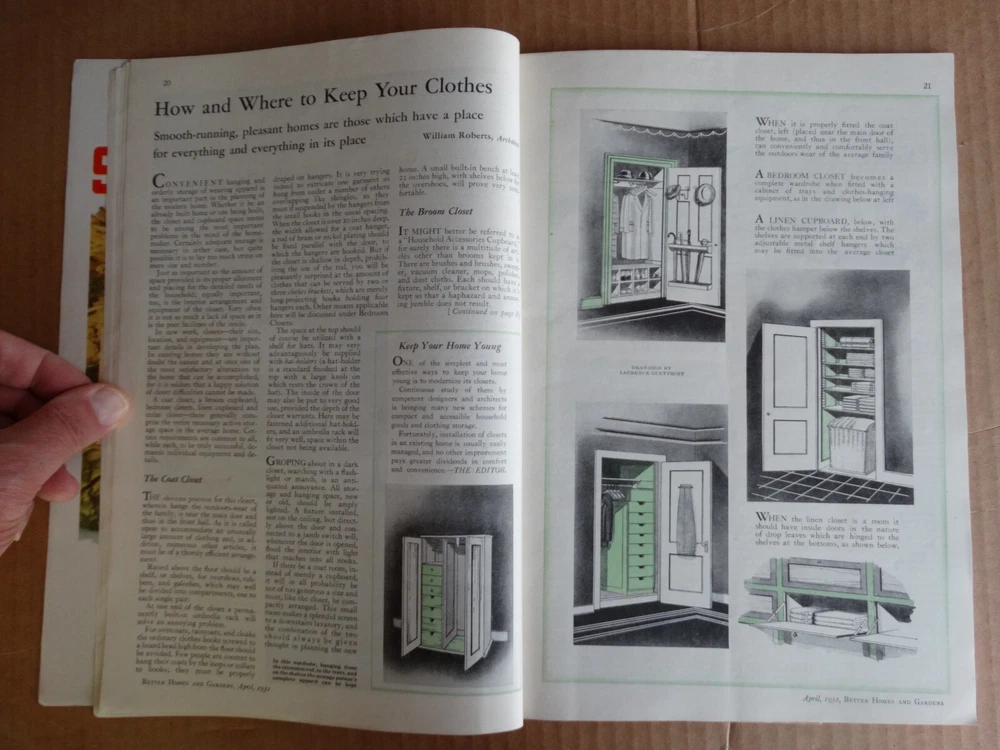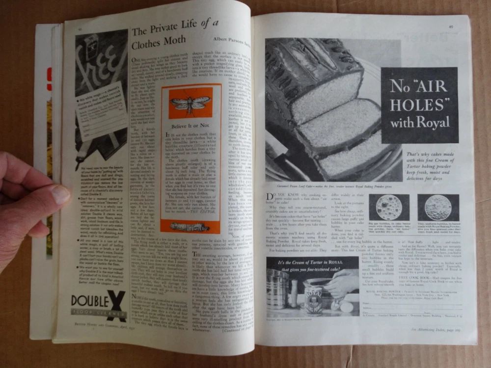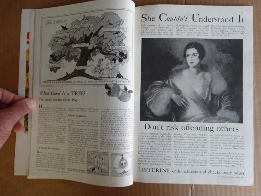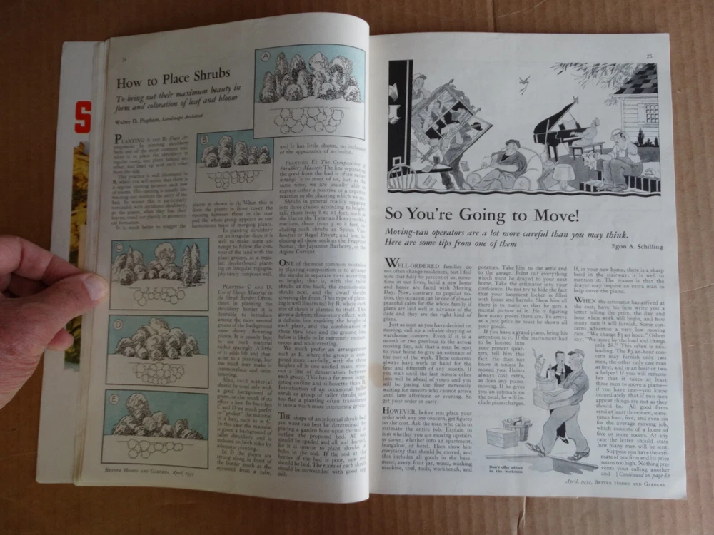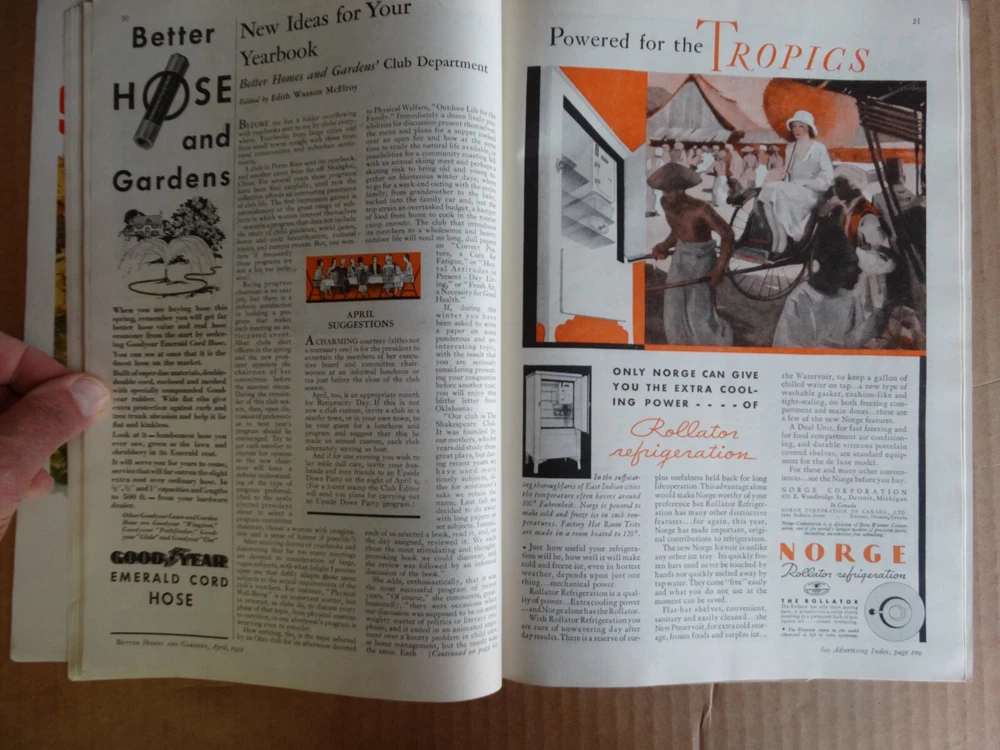A classic magazine of the 20 th century! This is the April 1932 issue of Better Homes & Gardens. Its painted cover by Frederick V. Carpenter features three birds in a nest. The magazine is like a “time capsule” allowing the reader to learn about home design and interior design from the early 1930s. In addition, there are many vintage black & white and color advertisements. This issue originally contained 112 pages and measures approximately 8.5 x 12 inches. Better Homes and Gardens is the fourth best-selling magazine in the United States. The magazine focuses on interests regarding homes, cooking, gardening, crafts, healthy living, decorating and entertaining. The magazine is published monthly by the Meredith Corporation. It was founded in 1922 by Edwin Meredith, who had previously been the United States Secretary of Agriculture under President Woodrow Wilson. The original name was Fruit, Garden and Home from 1922 to 1924. The name was changed in 1925 to Better Homes & Gardens (and later to Better Homes and Gardens).